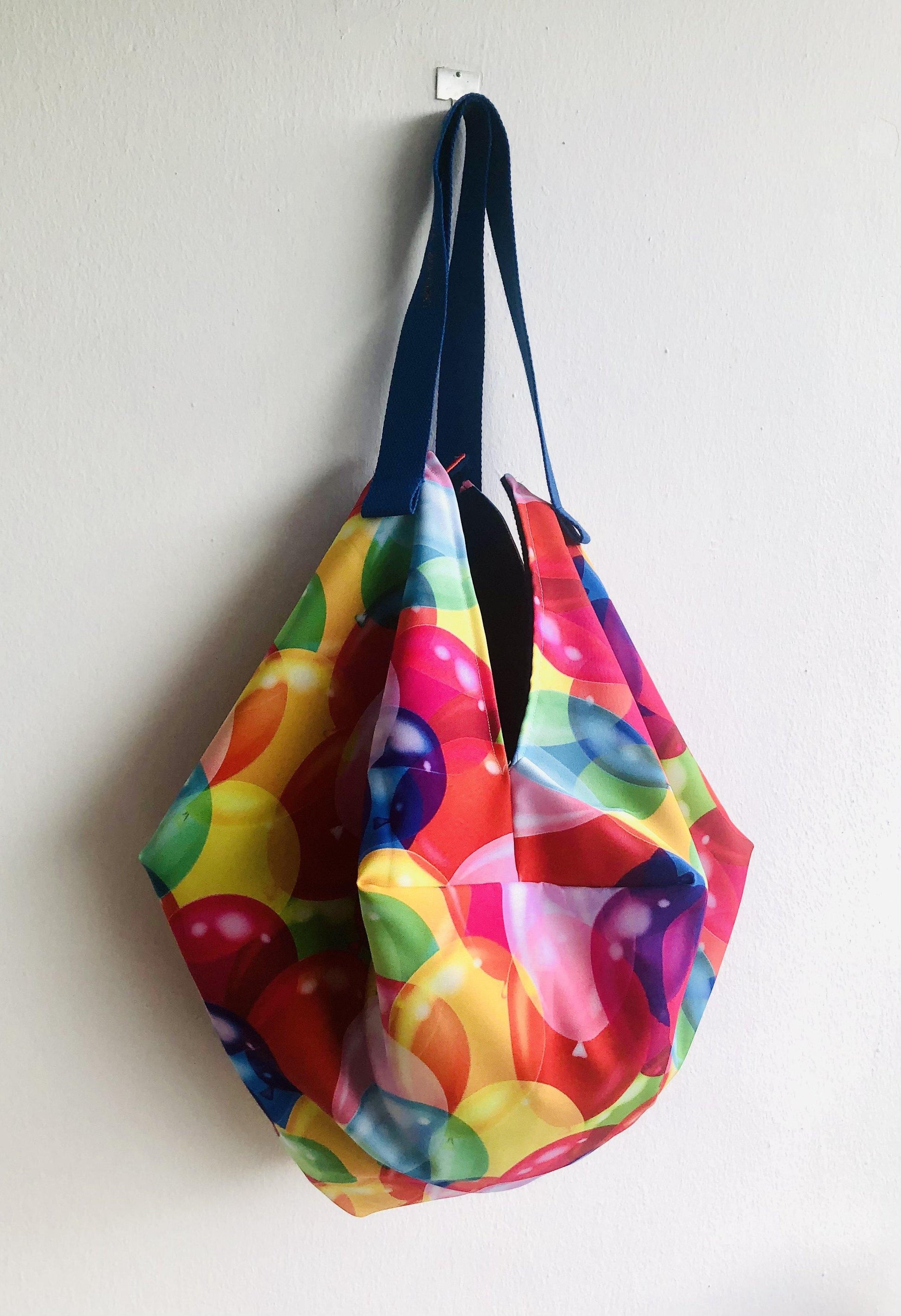 Bolso de hombro origami, bolso de mano reversible hecho a mano, bolso de tela de colores | Explosion