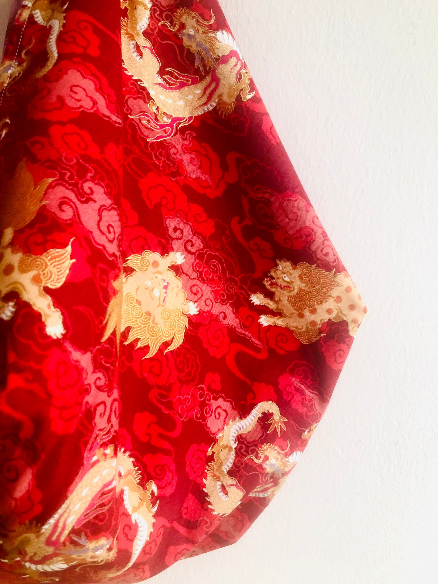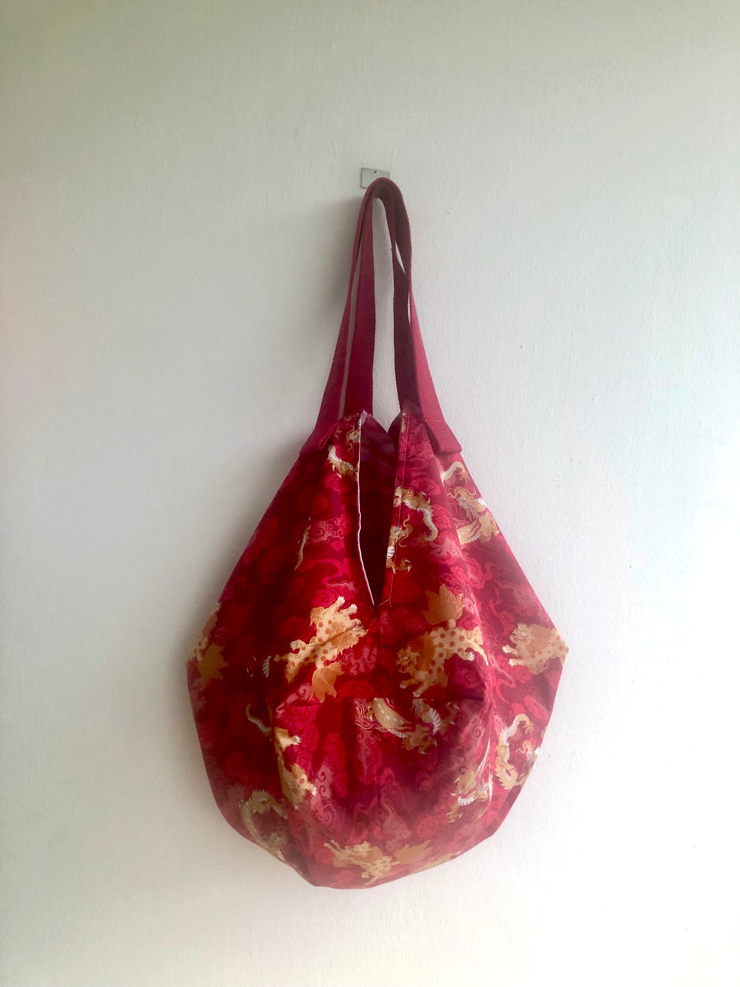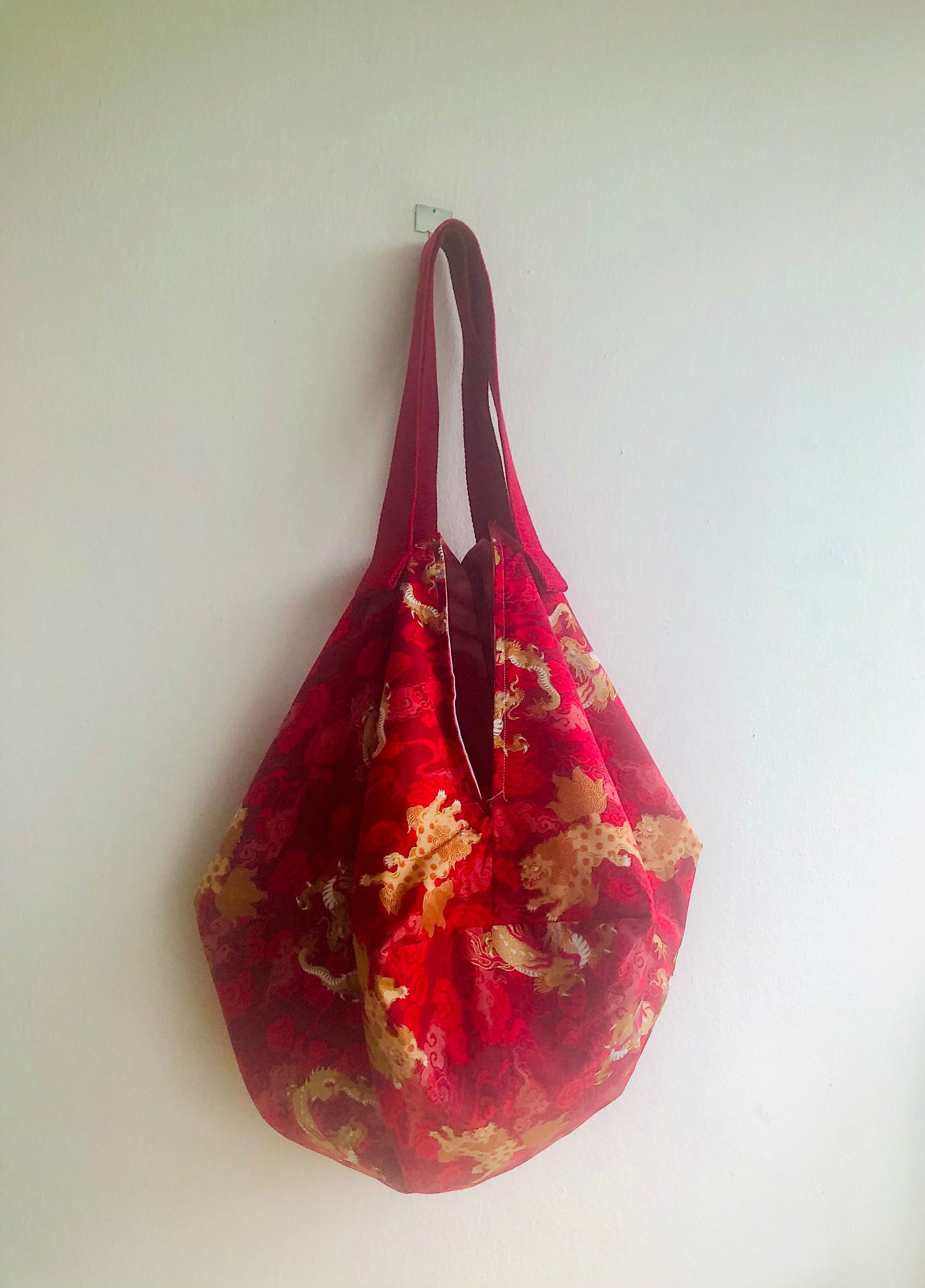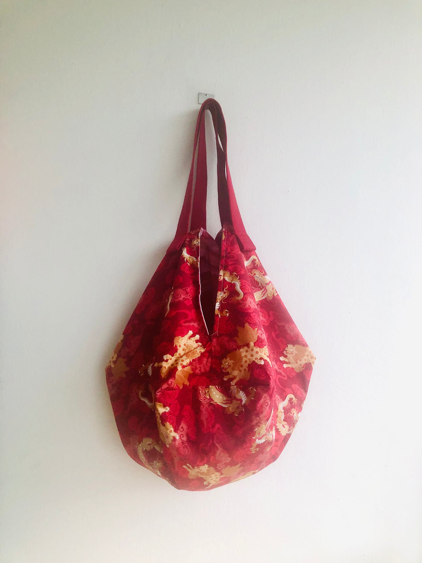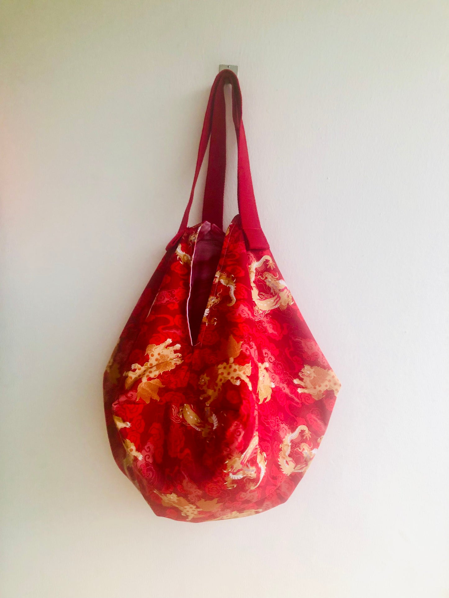 Japanese inspired origami bag , sac shoulder bag , reversible eco friendly bag | Golden dragons flying over the Canyon