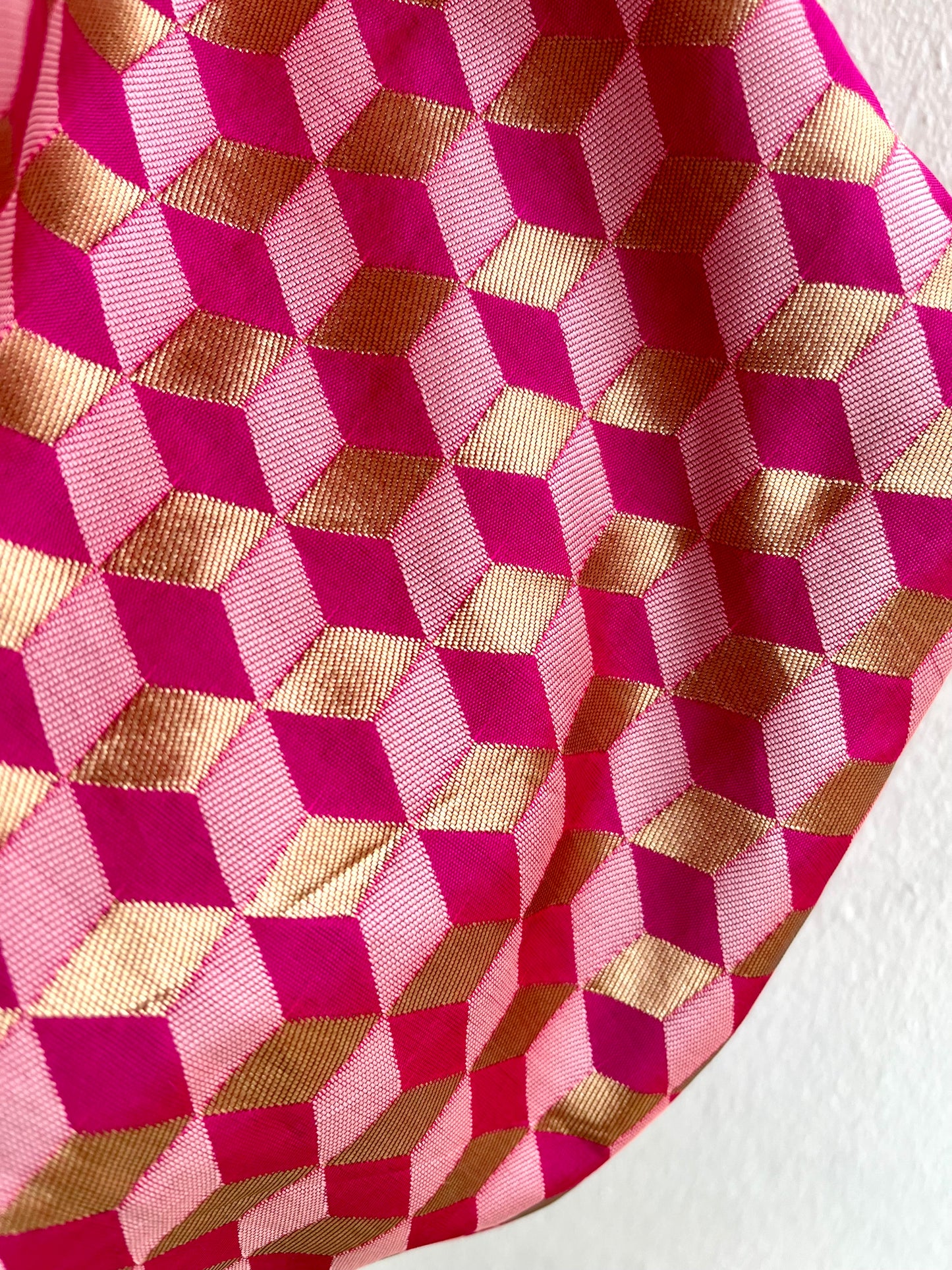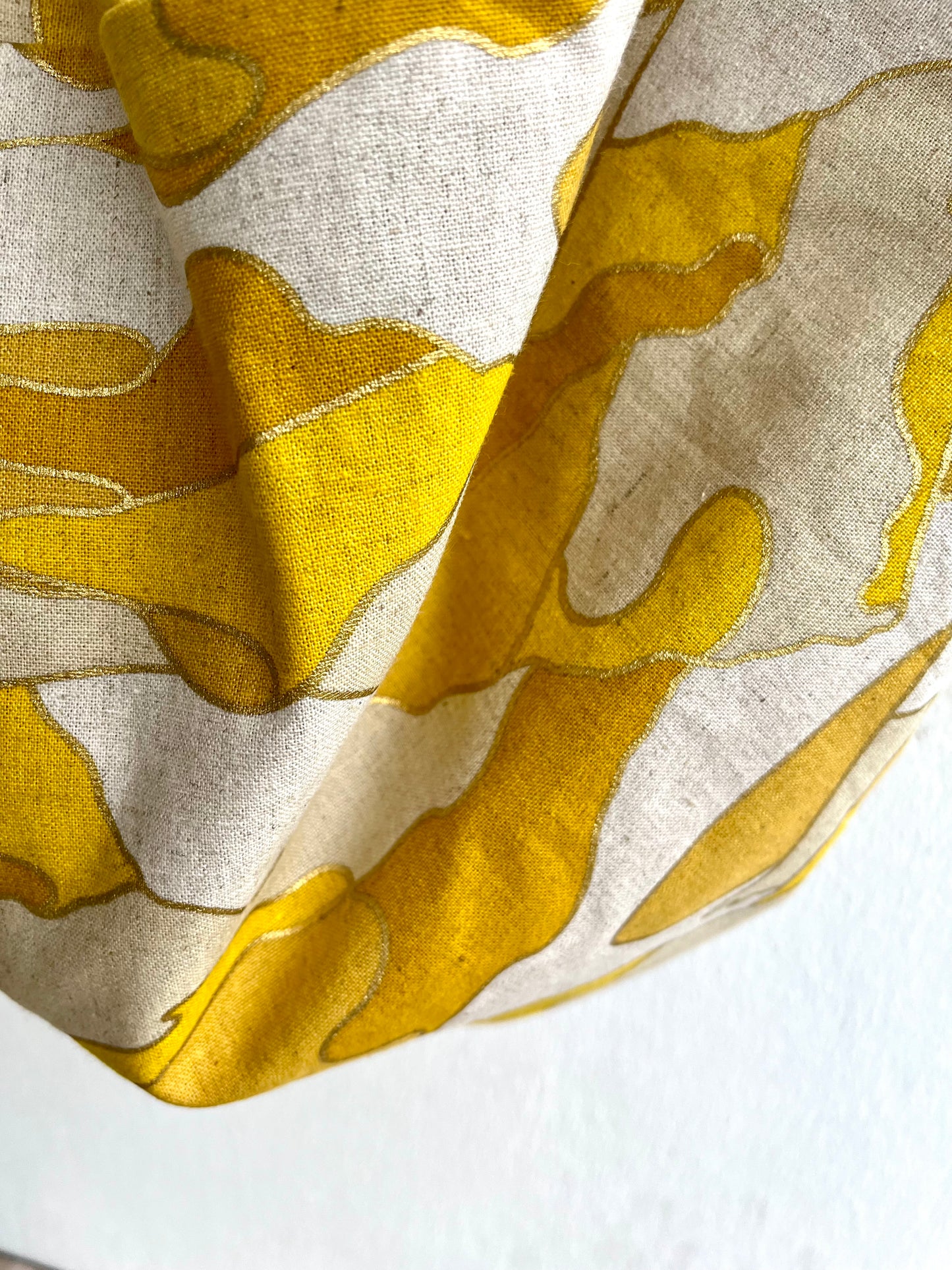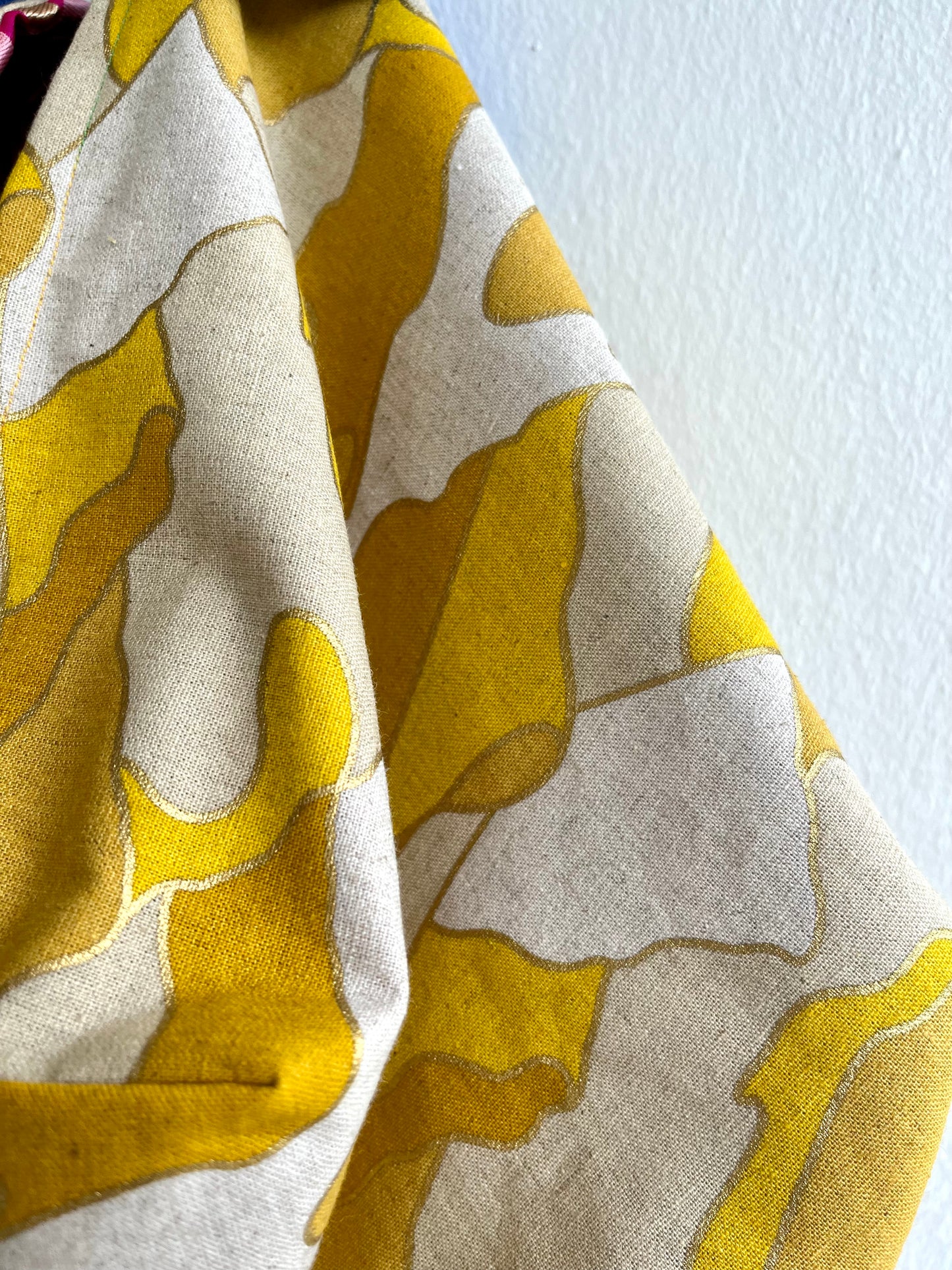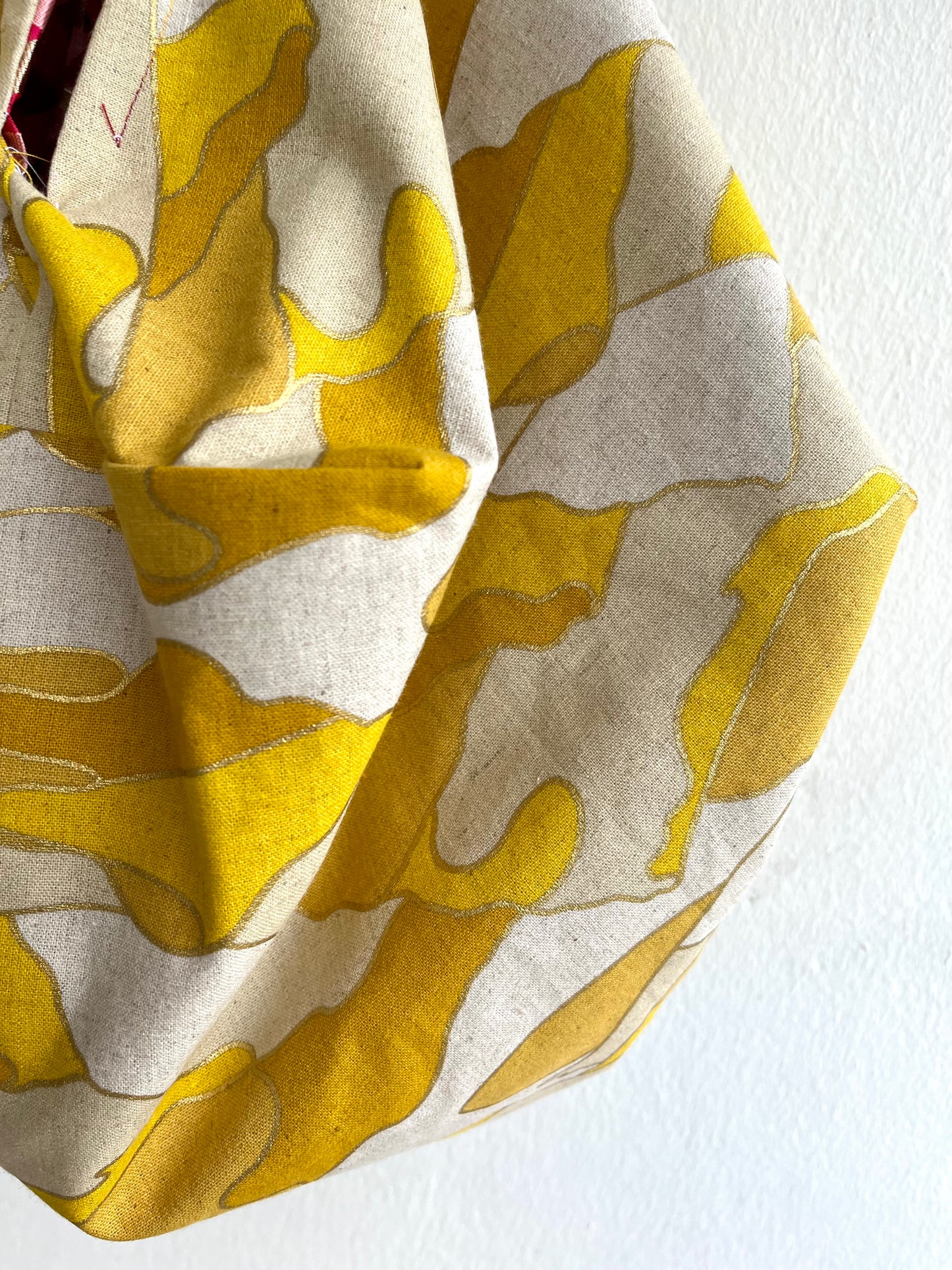 Japanese inspired reversible bag , origami sac bag , reversible fabric bag , shoulder groceries eco bag | Yellow dunes with golden sparkles