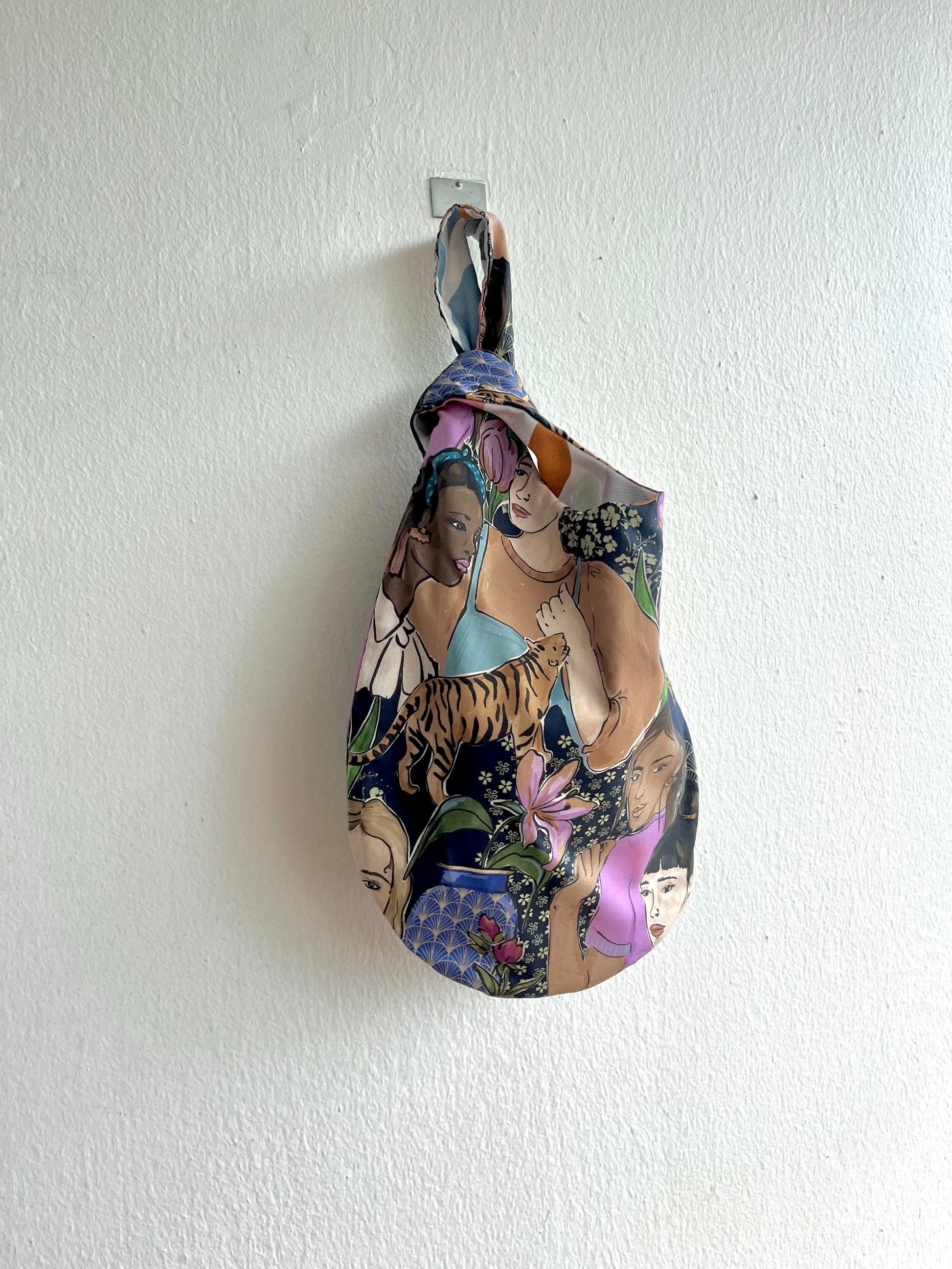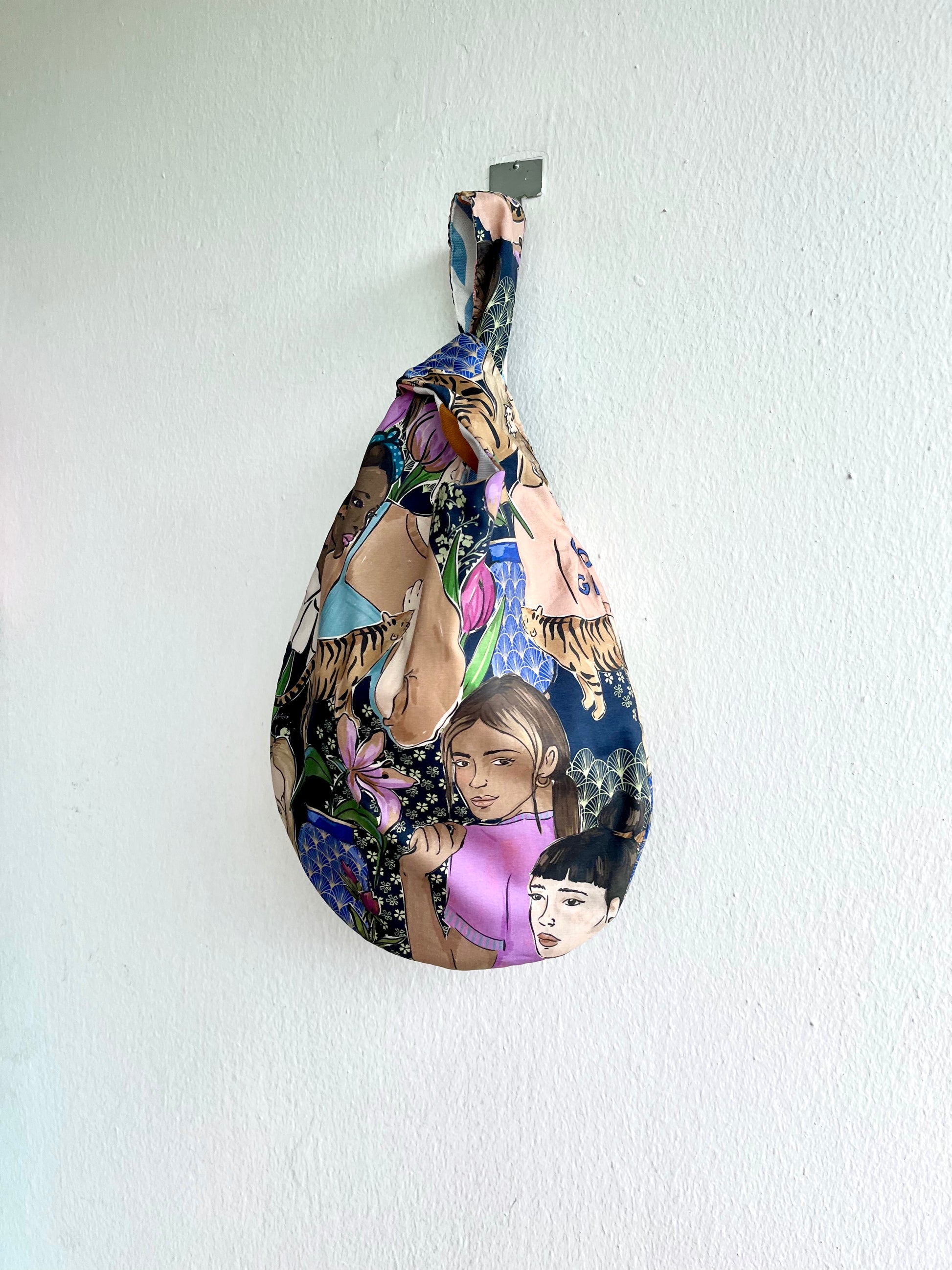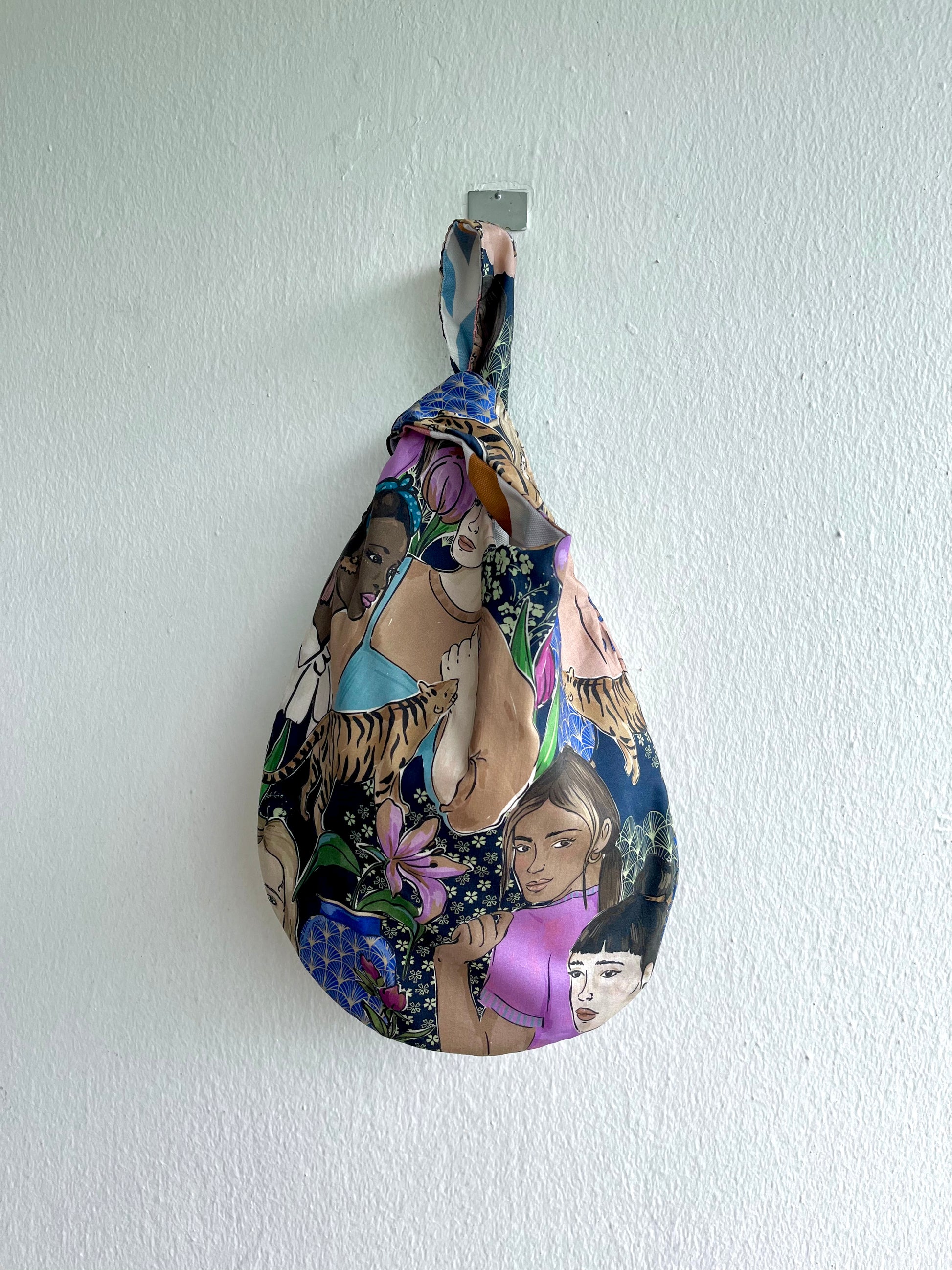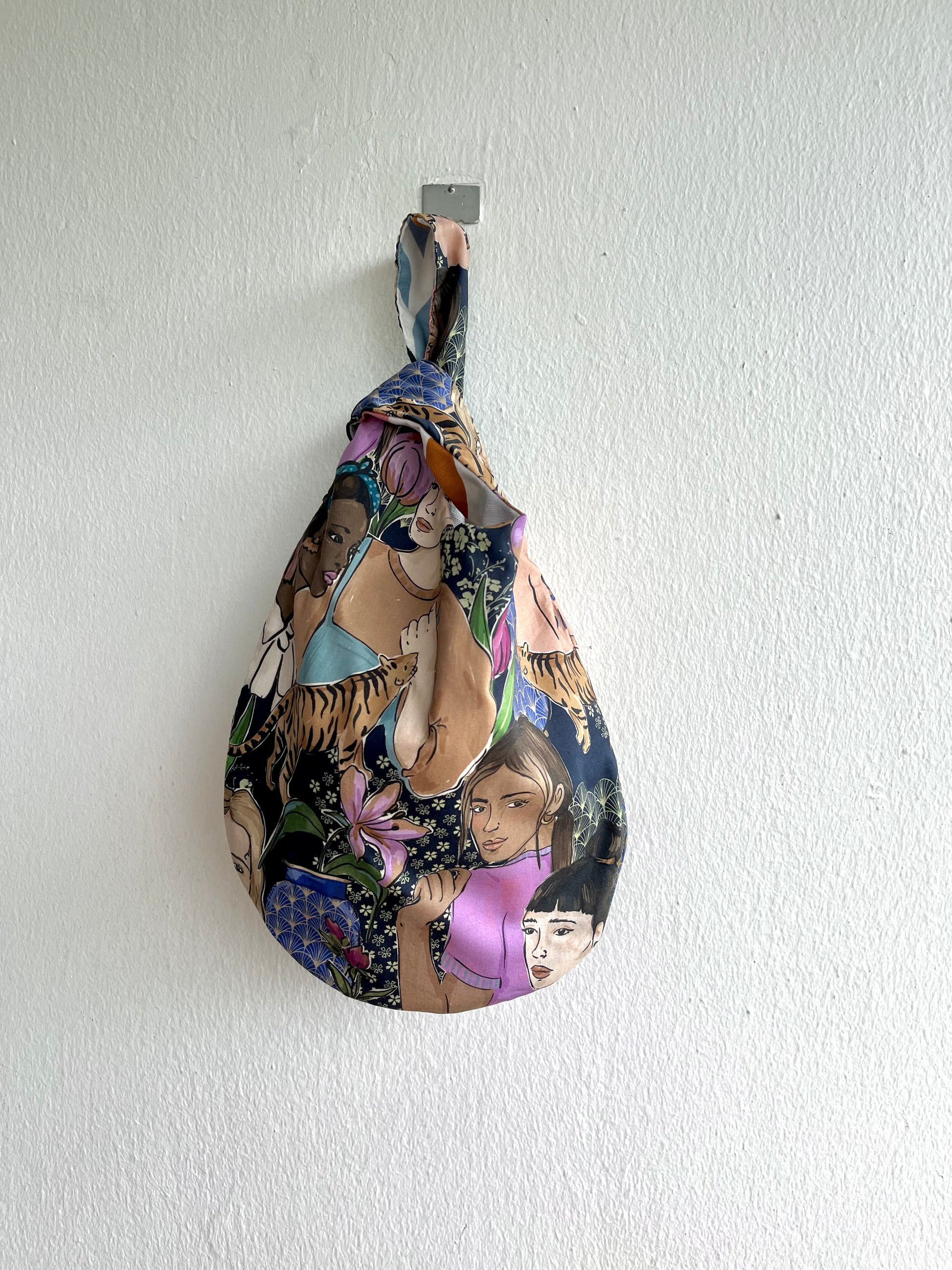 Origami reversible knot bag , small wrist Japanese inspired bag , cool fabric eco bag | Island of Bali