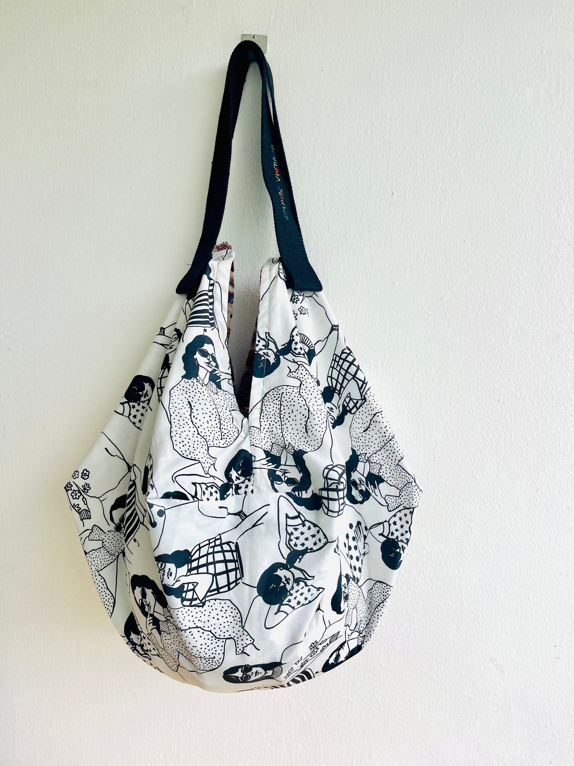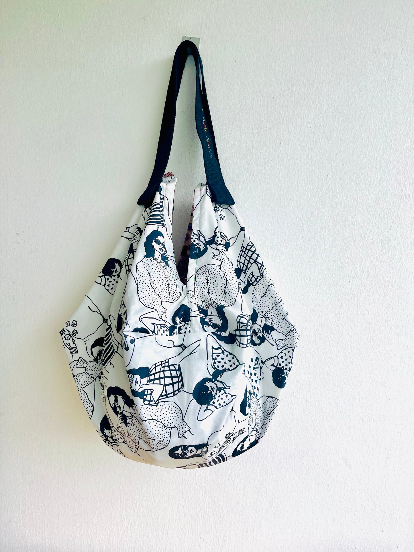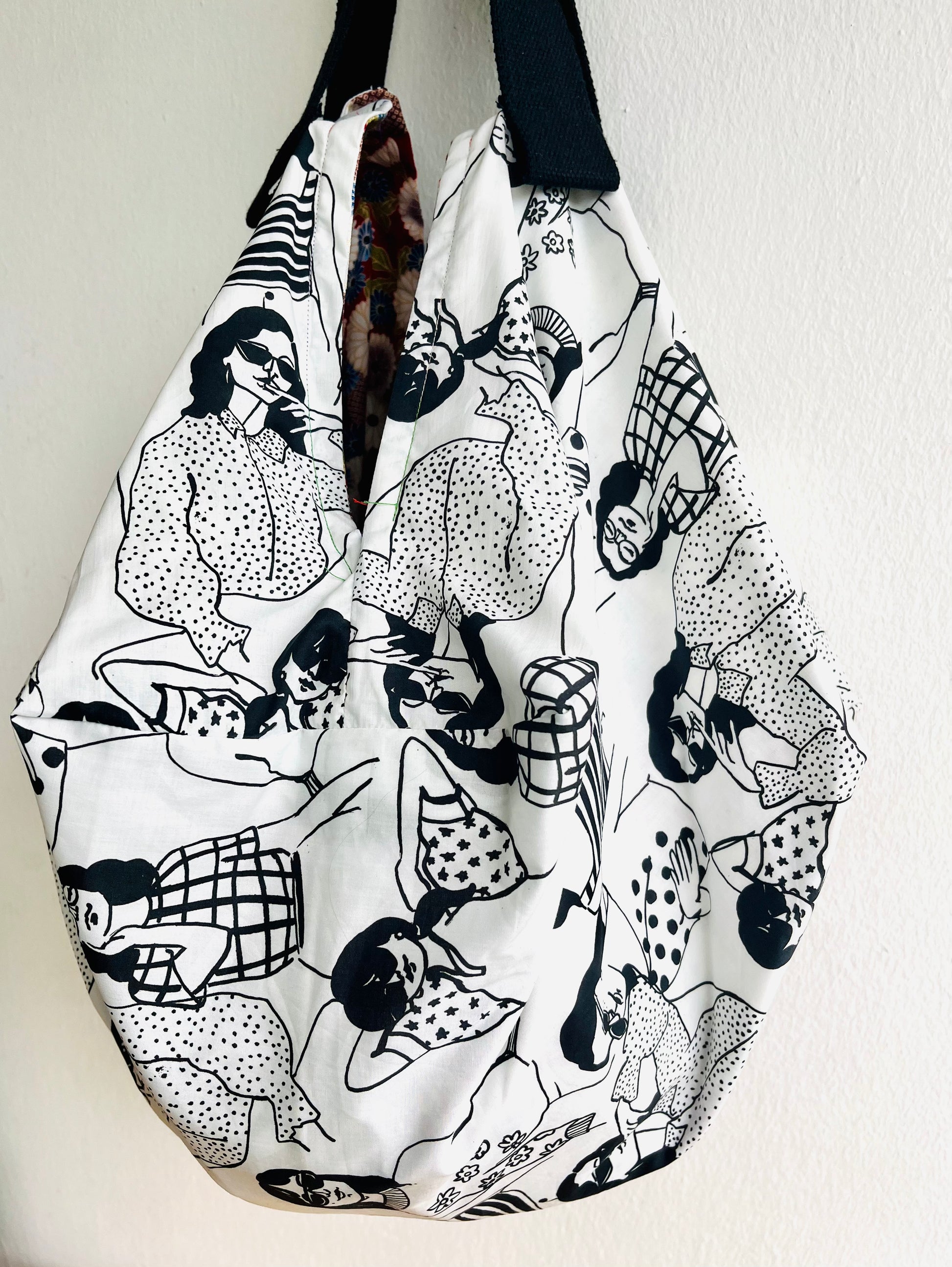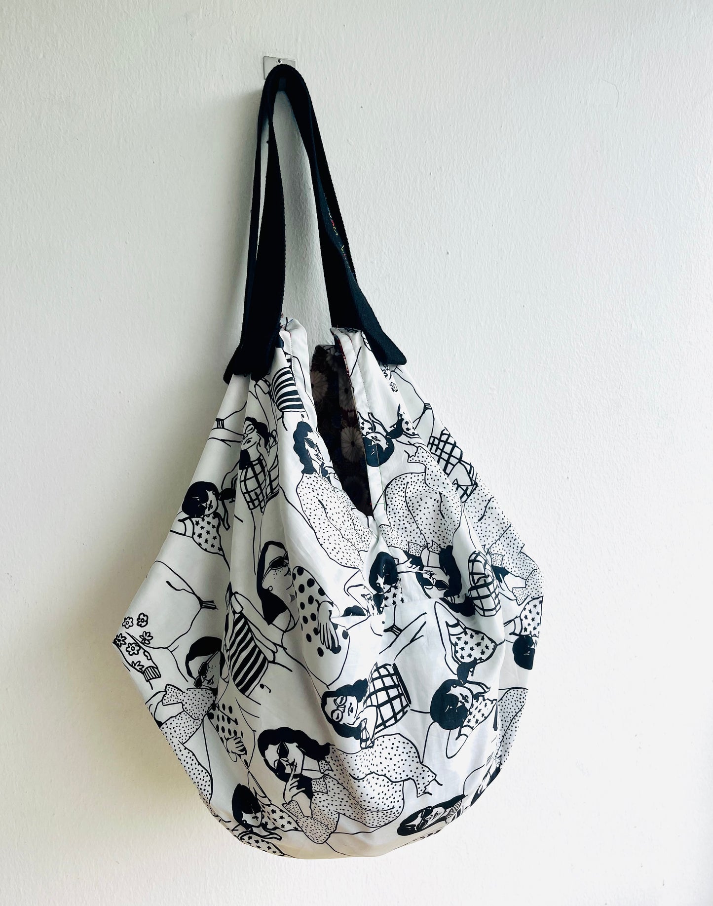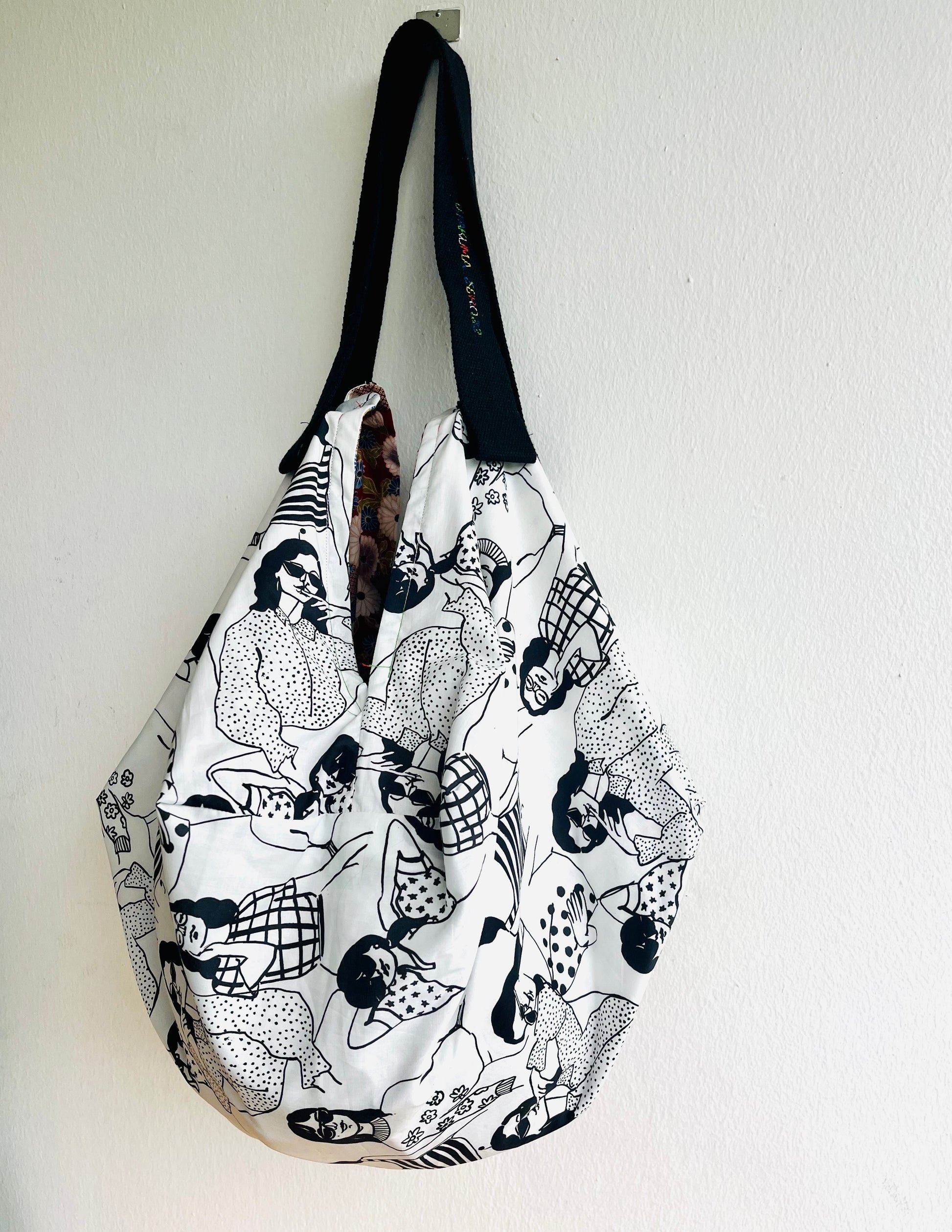 Origami sac bag , handmade cool fabric bag , Japanese inspired reversible bag , shoulder eco bag | Chillingin black & white mood