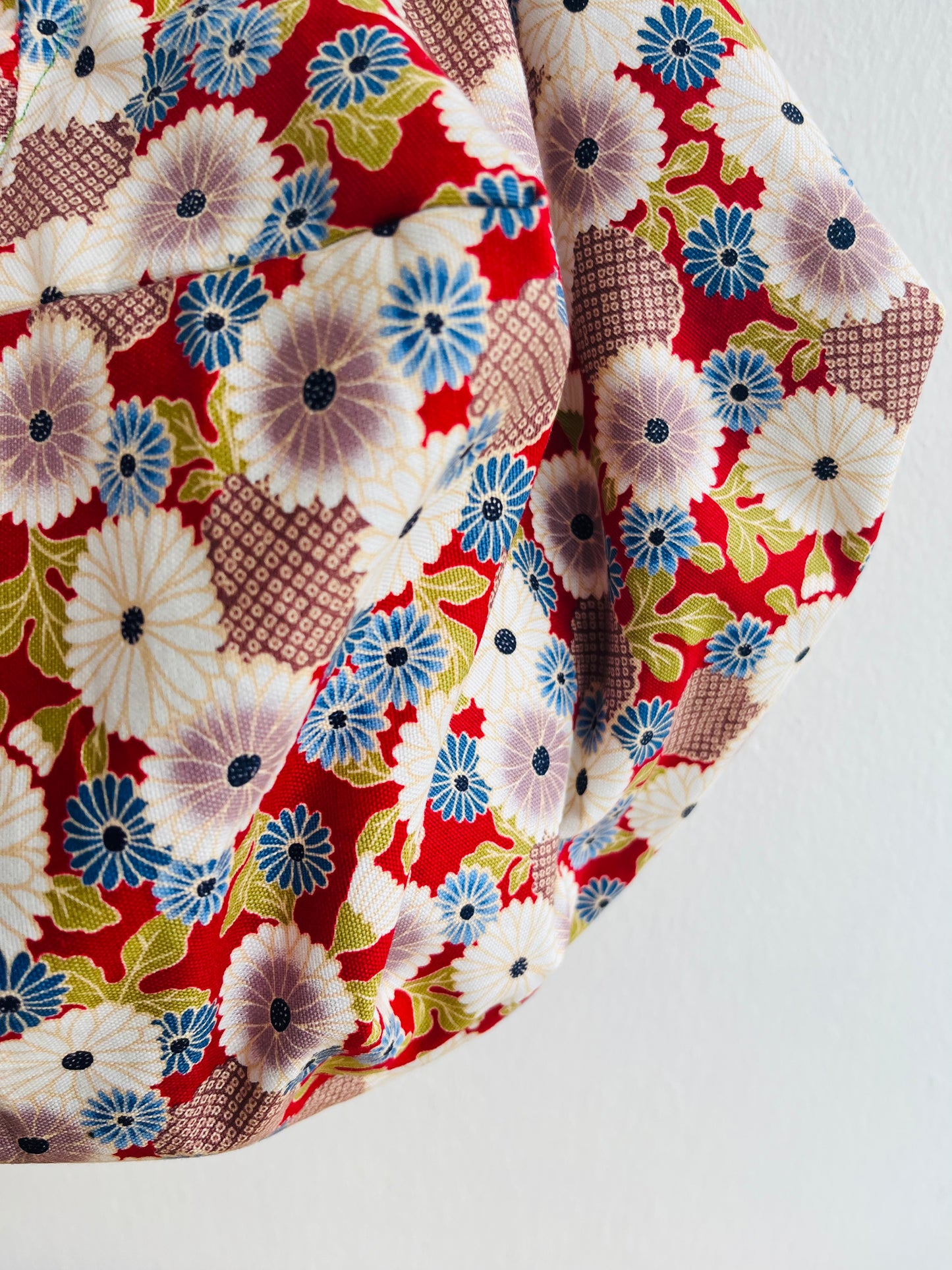 Our Mariko bags are inspired by Japanese forms and shapes. They are sewn following origami technique. They have an octagonal shape that makes them look like a lotus flower.