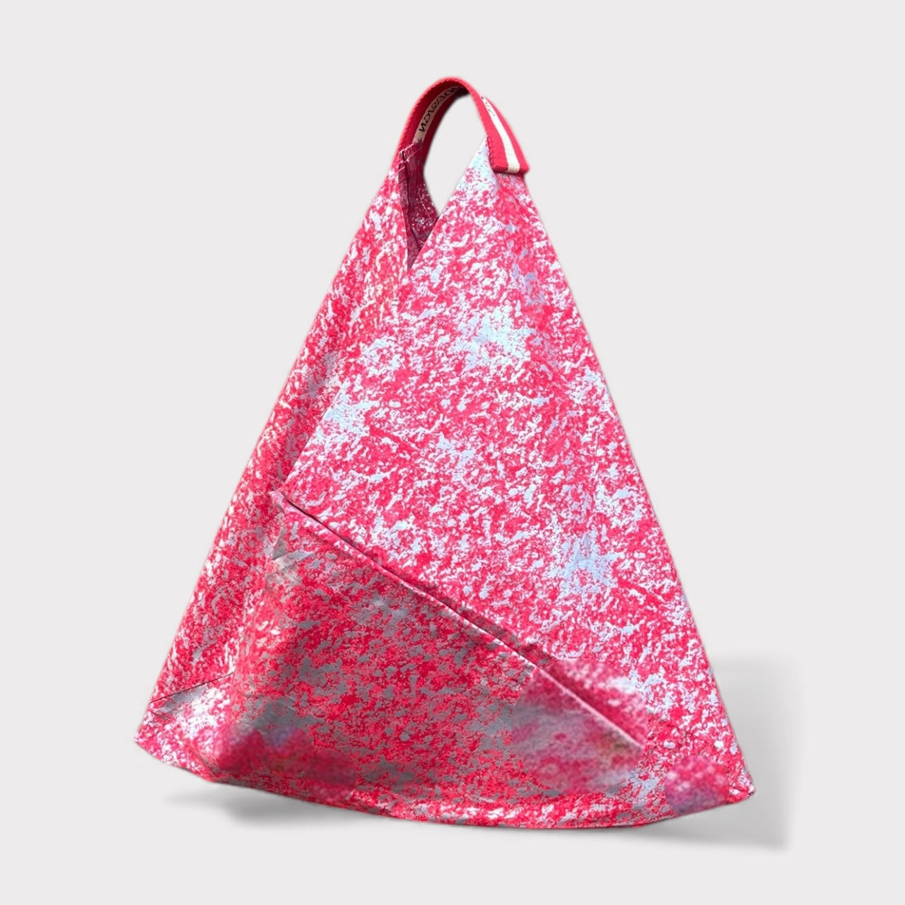 This one-of-a-kind ‘Red Sparkles' bento is made from a super cool fabric that has a silver sparkle details. It is light but this unique fabric makes it quite strong. It’s a truly unique and special piece , perfect for everyday outfits but also for a special night out.