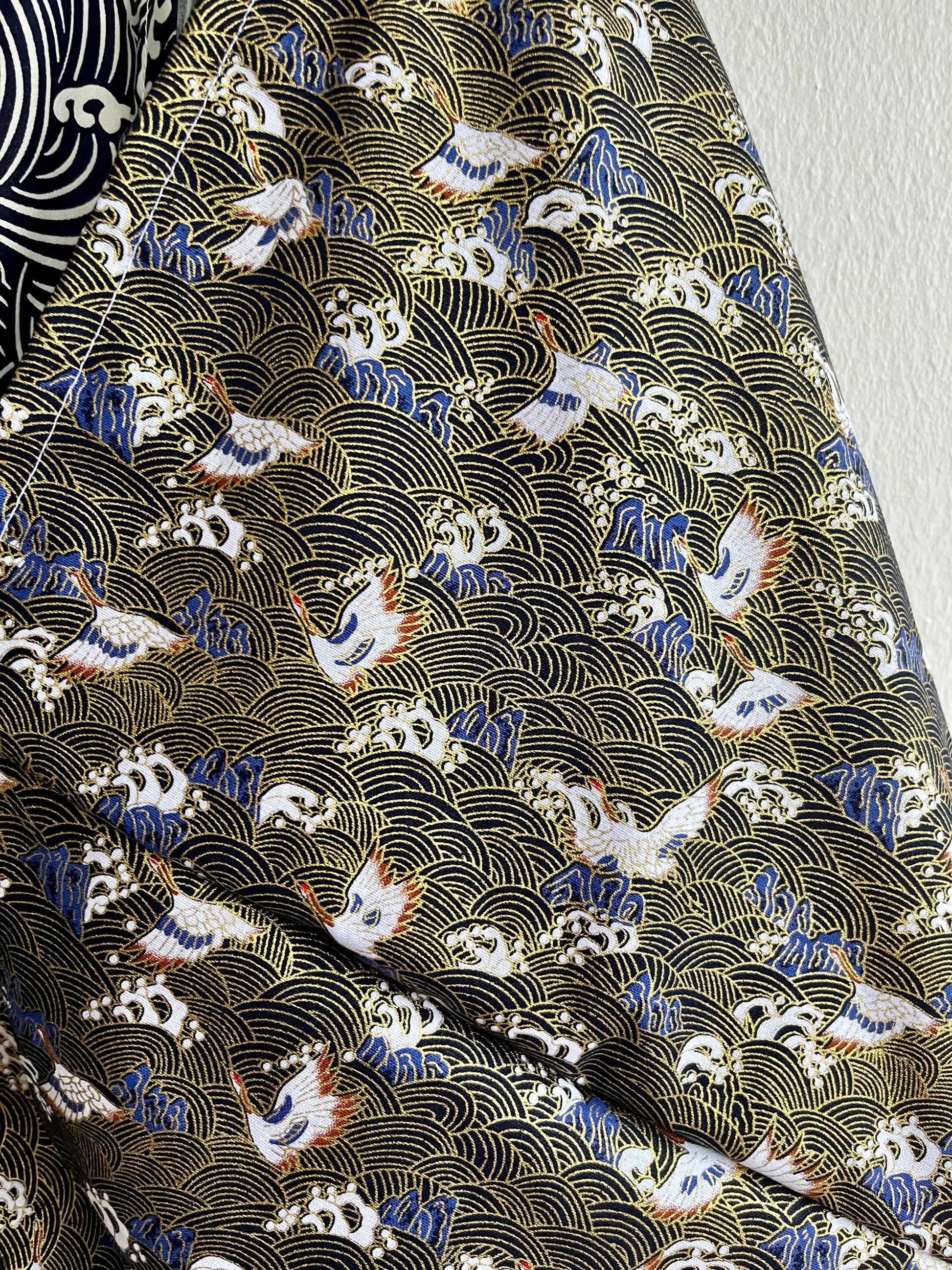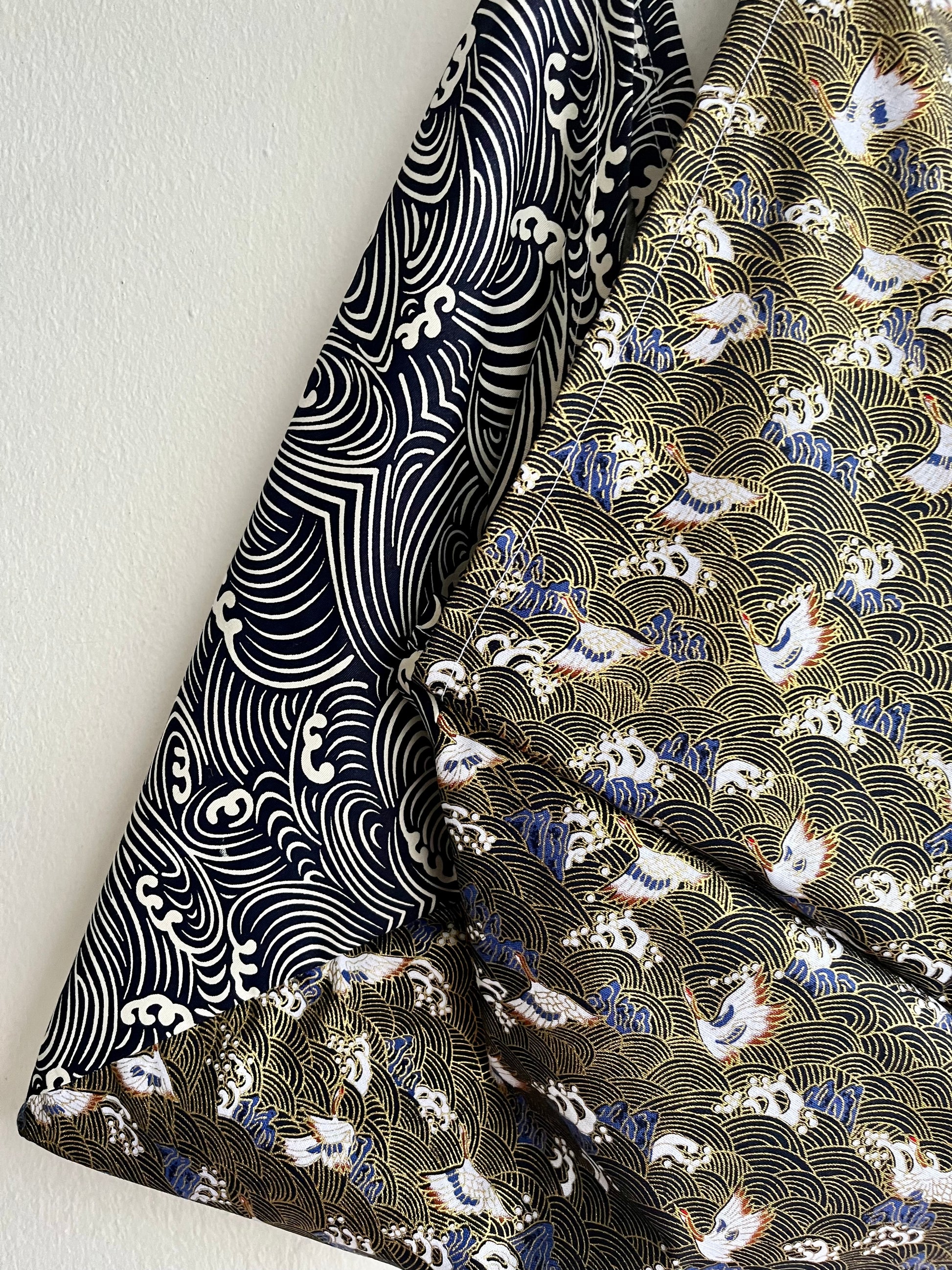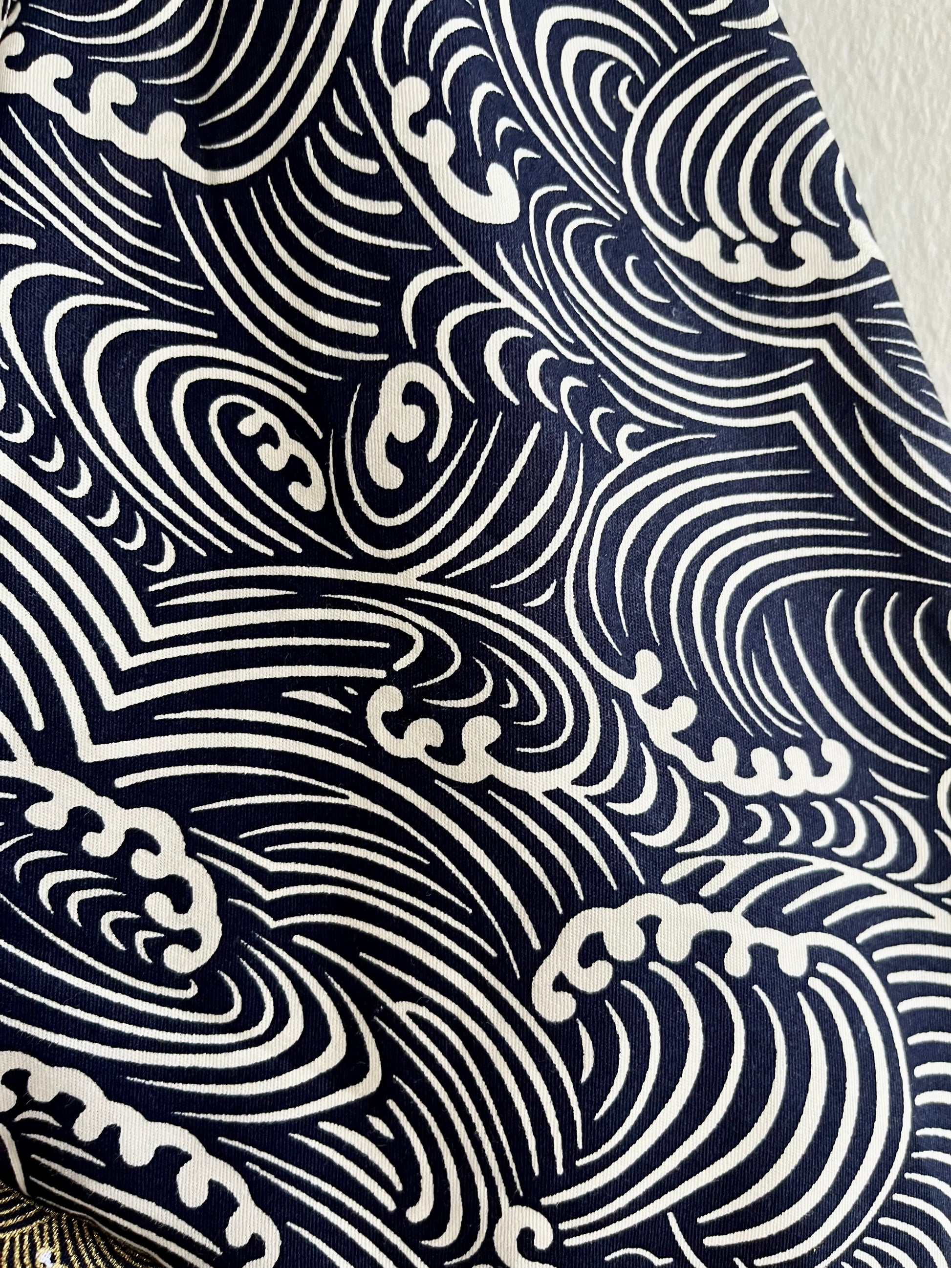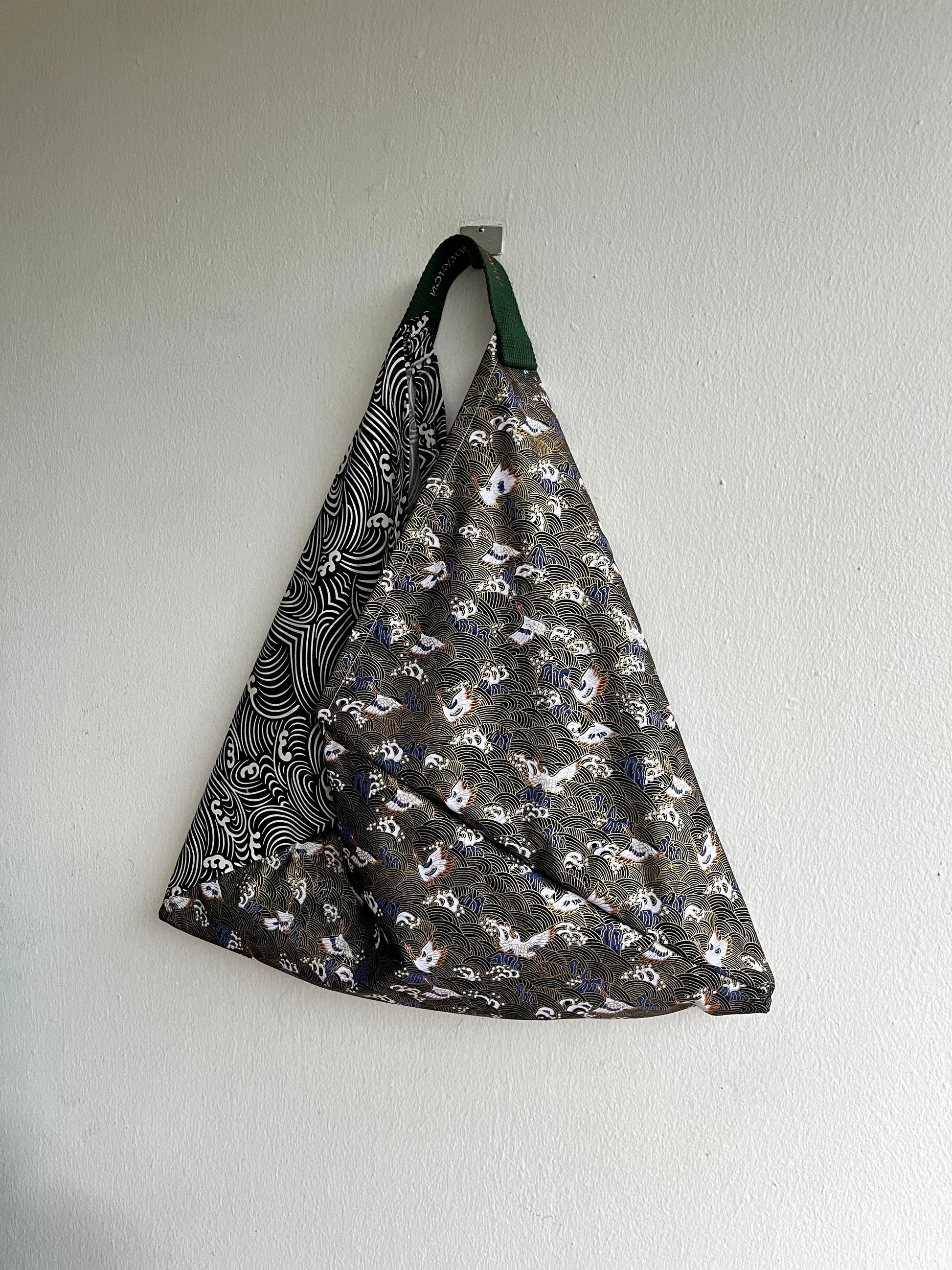 Origami tote bag , bento Japanese bag , shoulder triangle fabric bag , handmade gift idea | Stormy sea in the shores of Japan