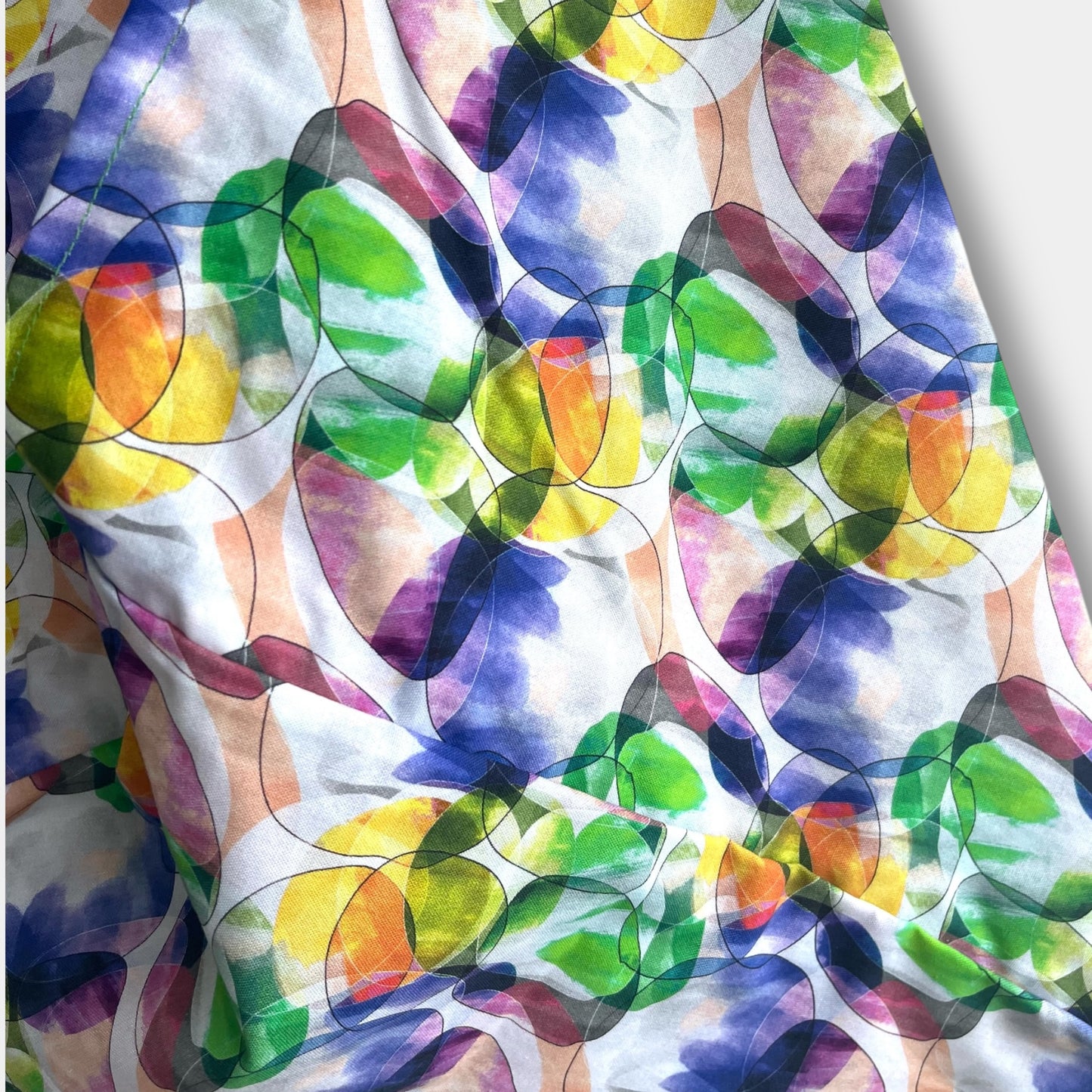 This one-of-a-kind 'Prisma' bento bag captures the mesmerizing play of light and color through geometric forms. This artistic piece brings optical beauty and contemporary elegance to your everyday style.