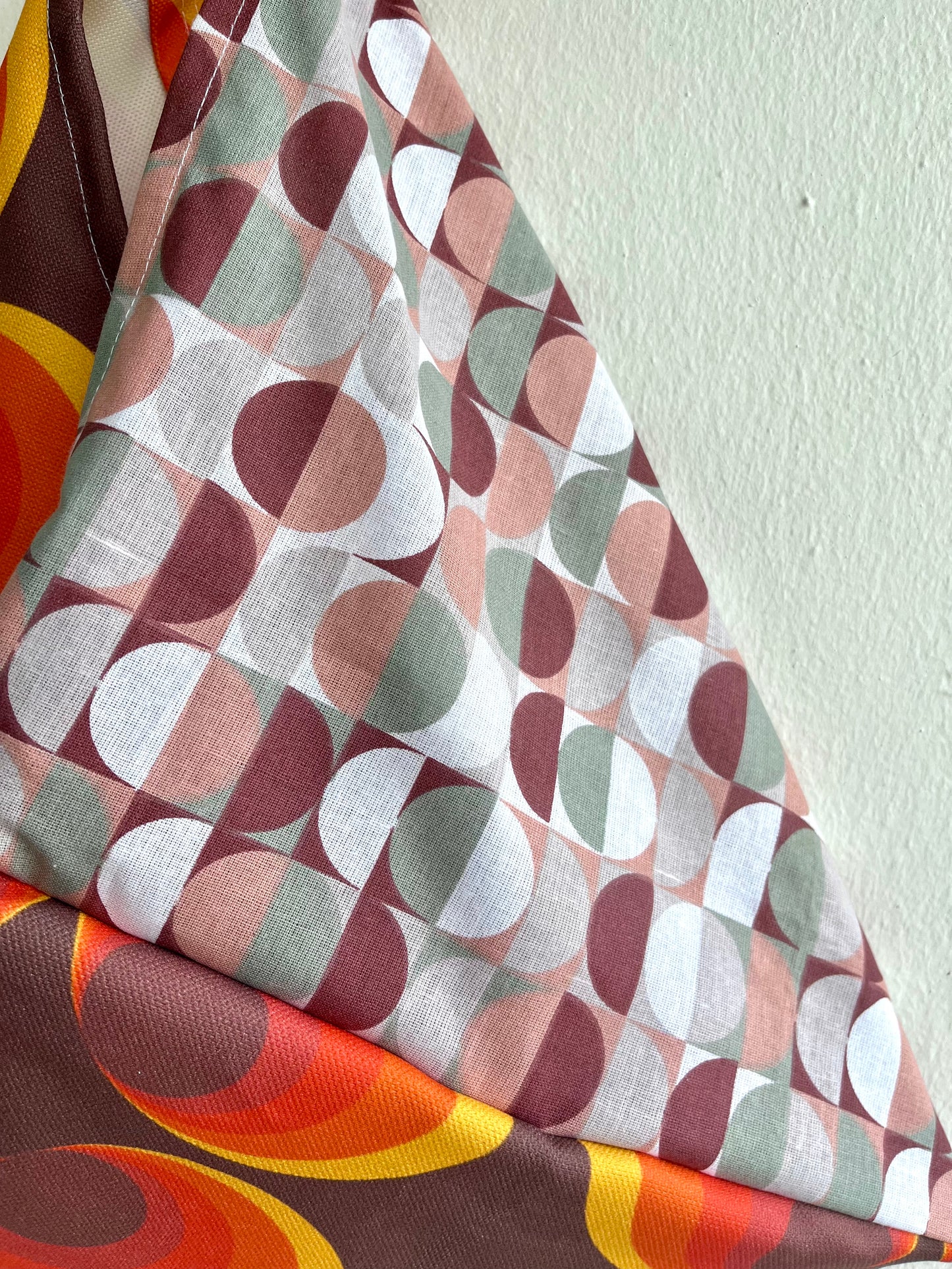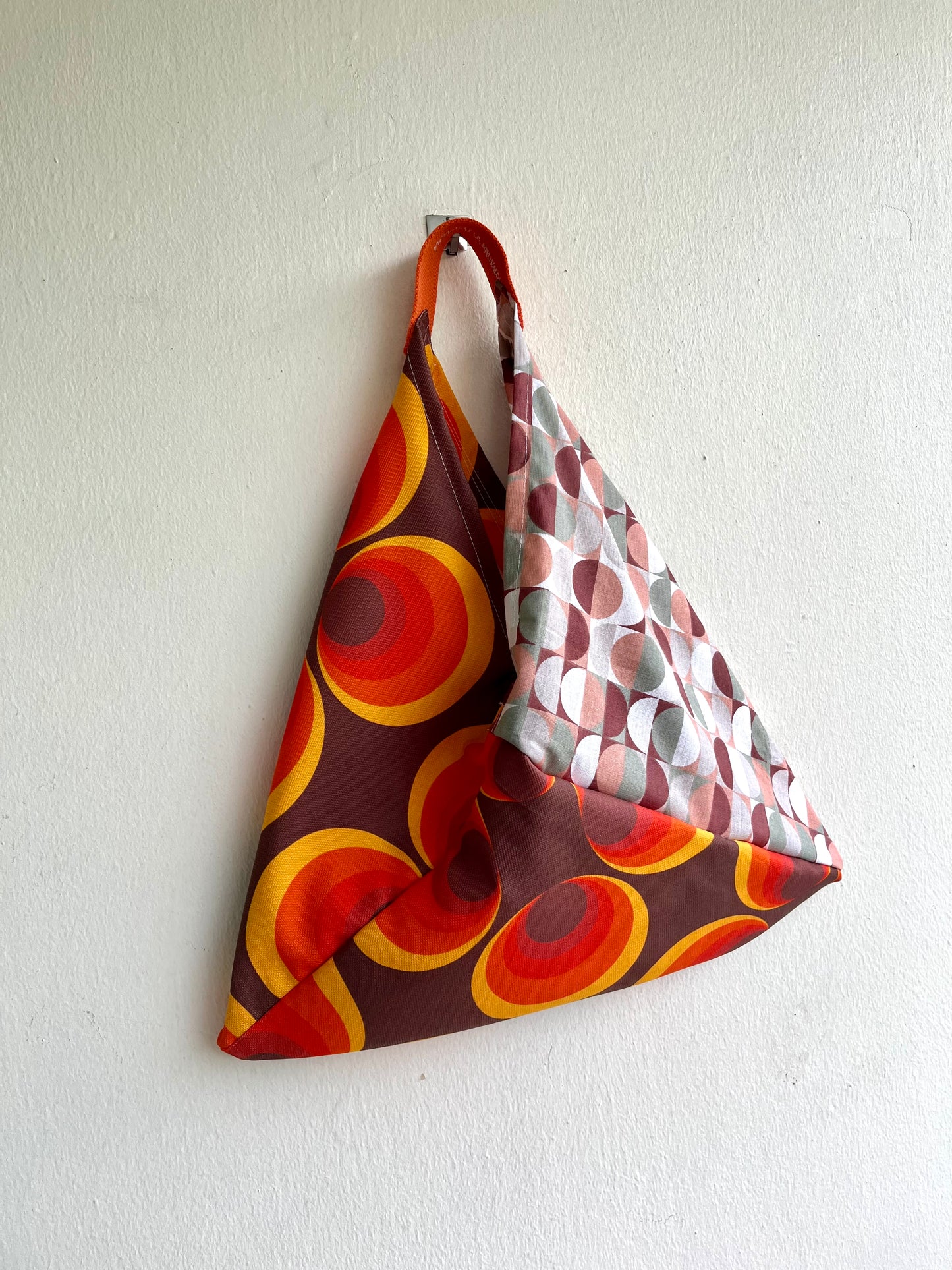 Inspired by traditional Japanese furoshiki and bento bag techniques, this origami-style bag represents centuries of sustainable carrying solutions, reimagined for modern life.
