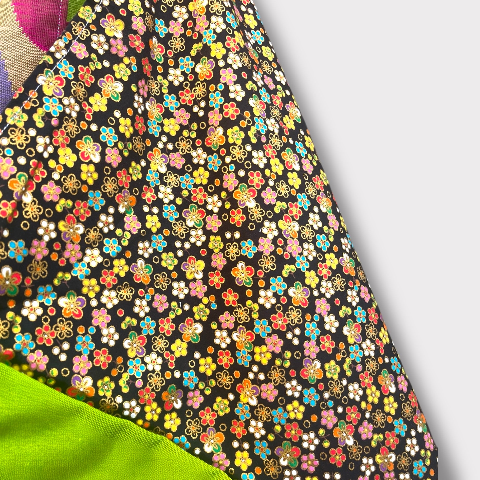 Handmade Bento bag | Myanmar waves and Japan flowers