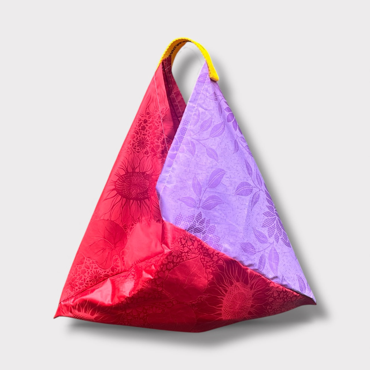 Inspired by traditional Japanese furoshiki and bento bag techniques, this origami-style bag represents centuries of sustainable carrying solutions, reimagined for modern life.
