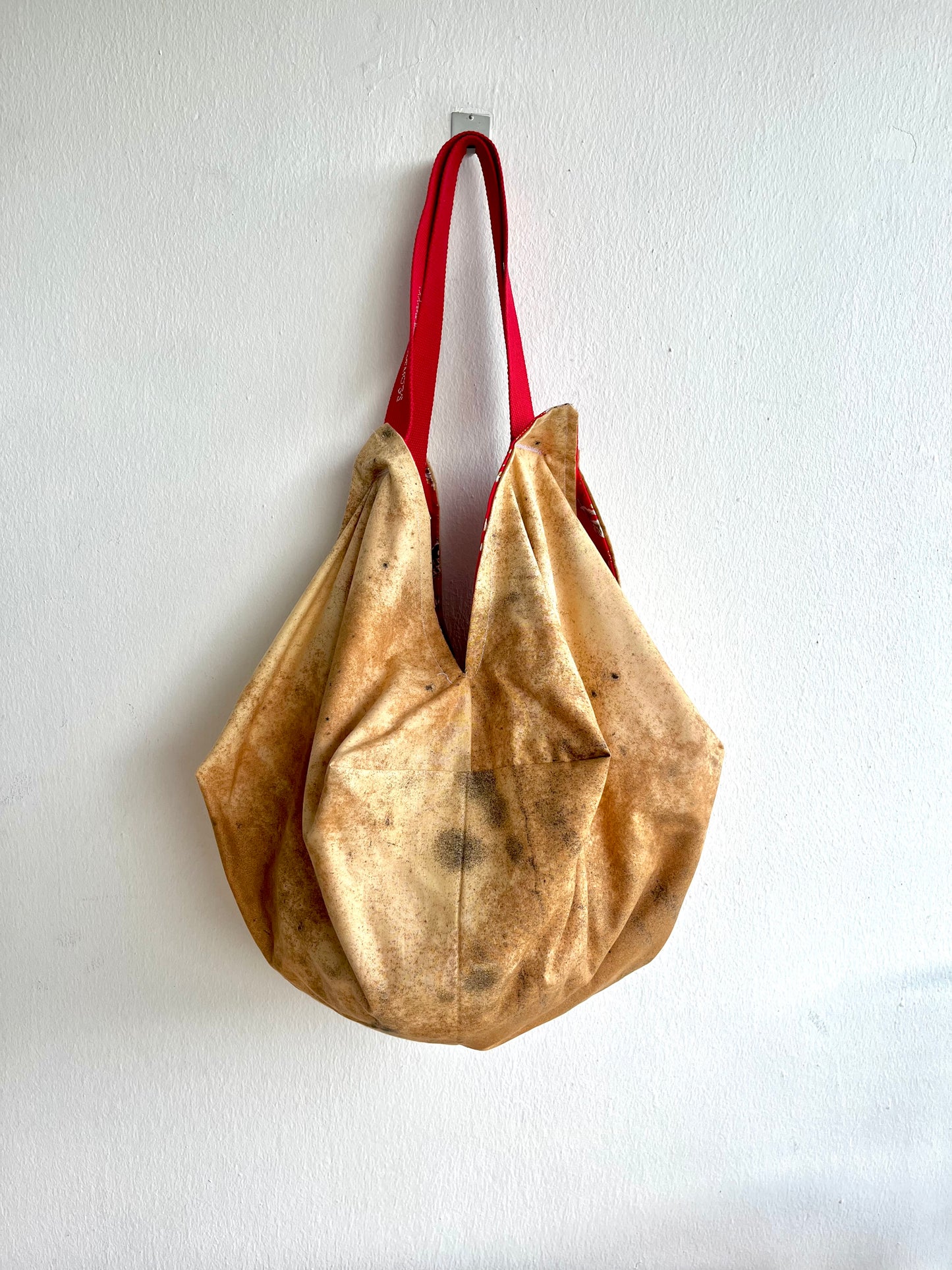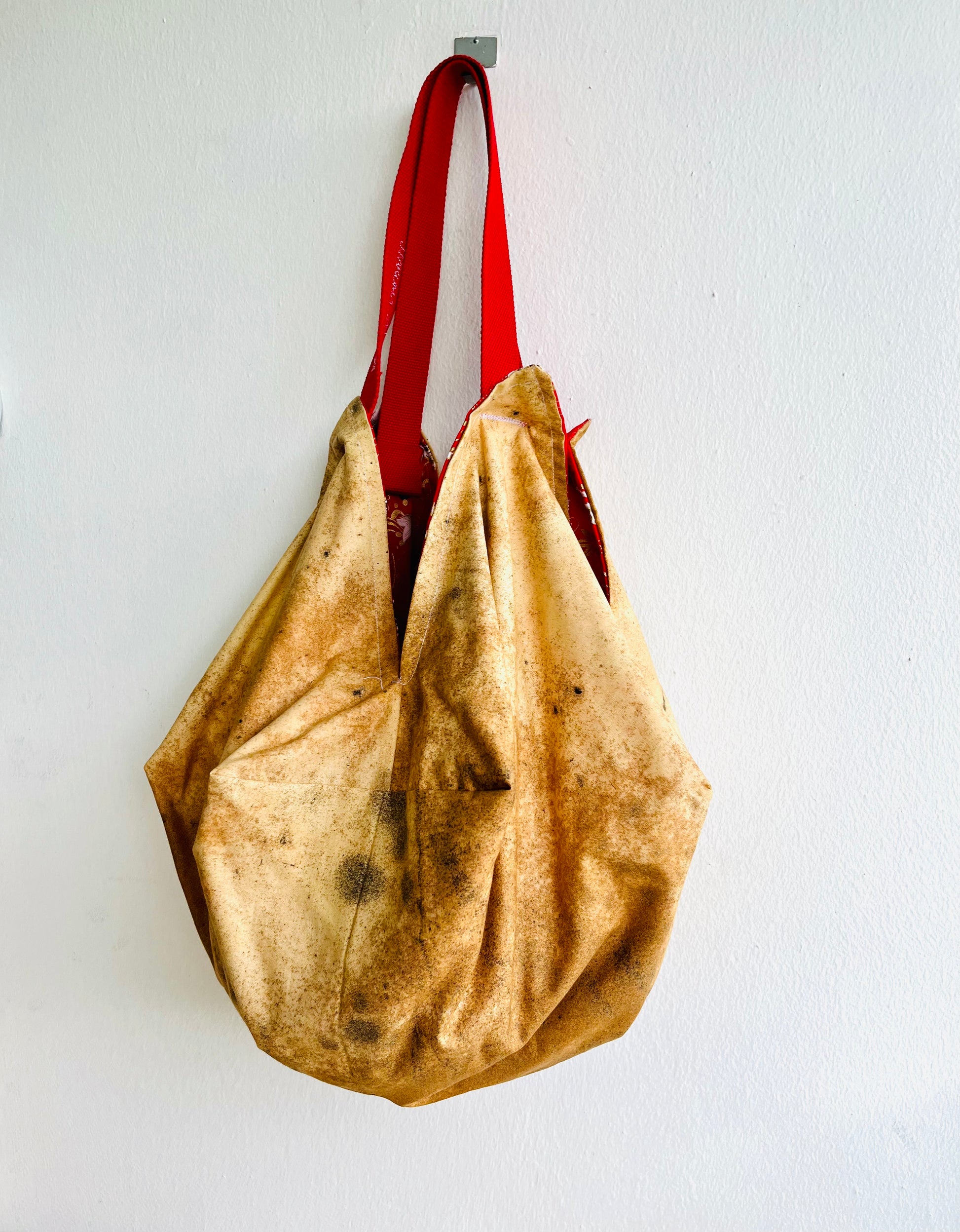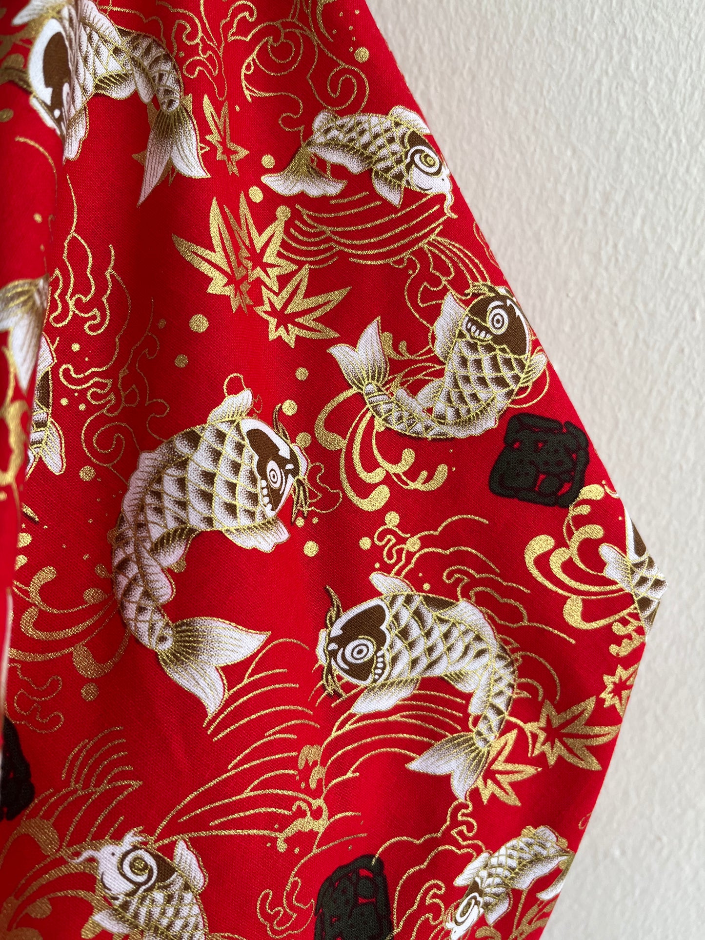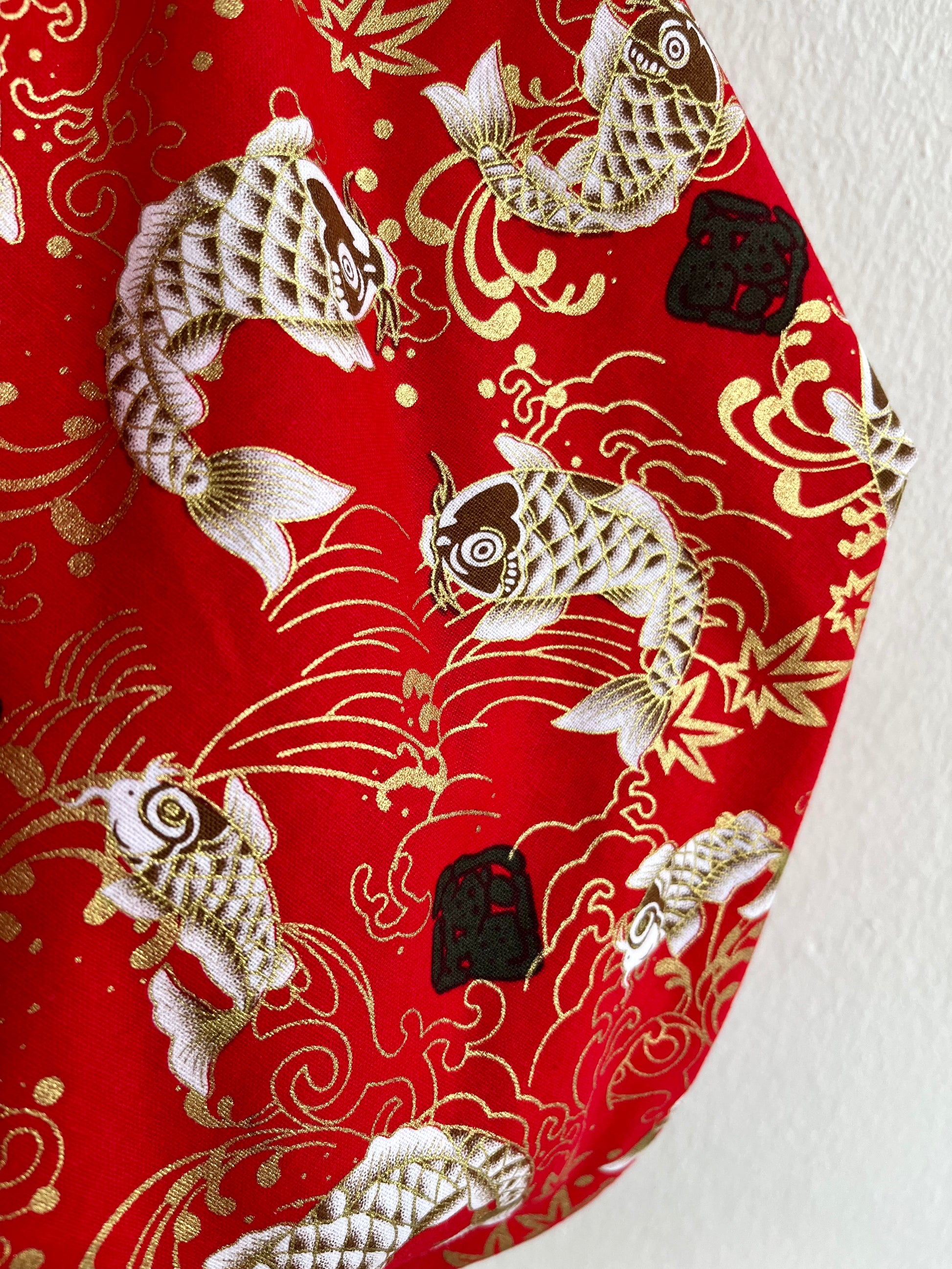 Japanese inspired sac bag , origami fabric reversible bag , eco friendly shoulder bag | Auspicious fish & modern art
