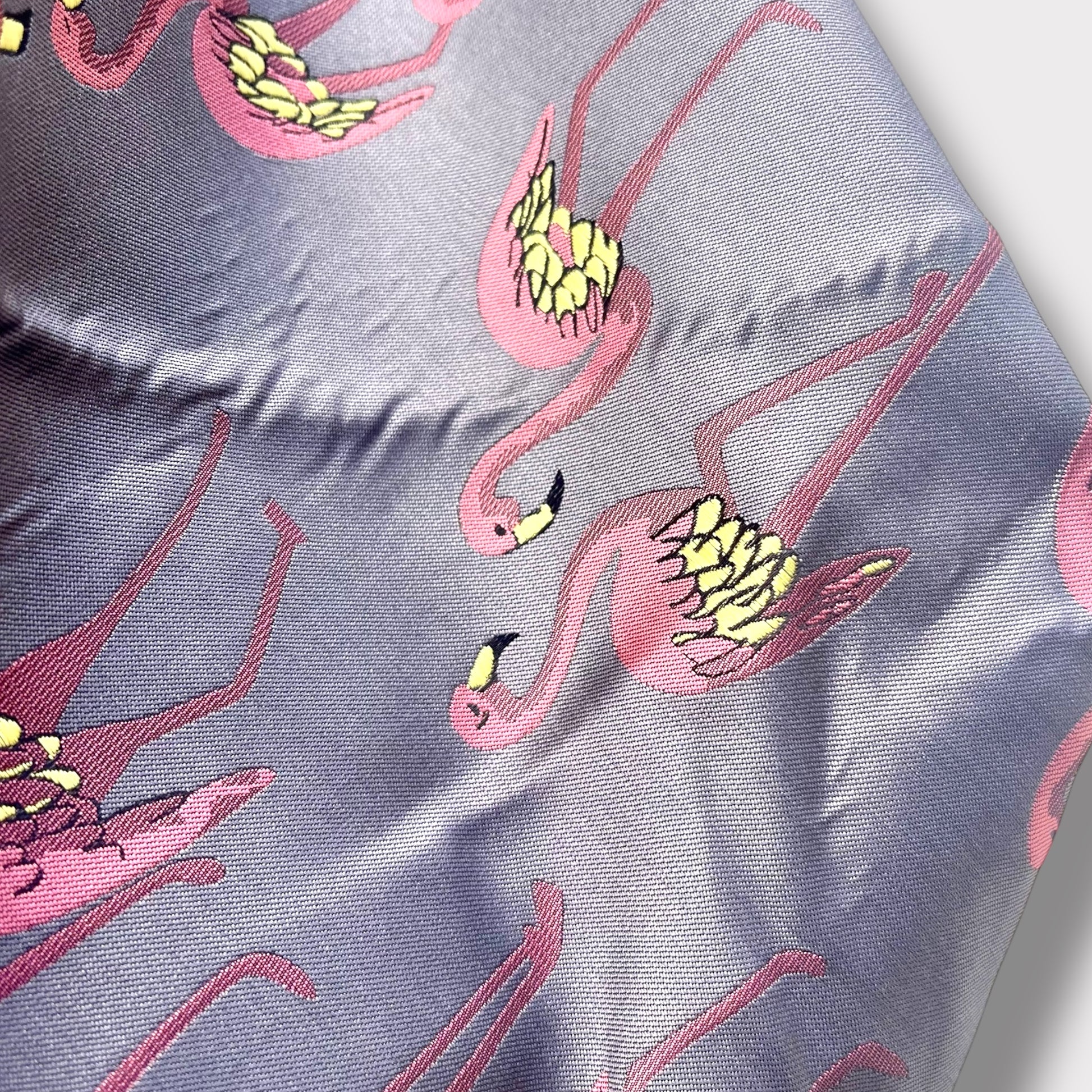 This one-of-a-kind 'Mariko | This cool “flamingos in Myanmar” bag is designed with a cool fabric we found in Thailand and for the reverse side we used a really special and unique traditional fabric from Myanmar.