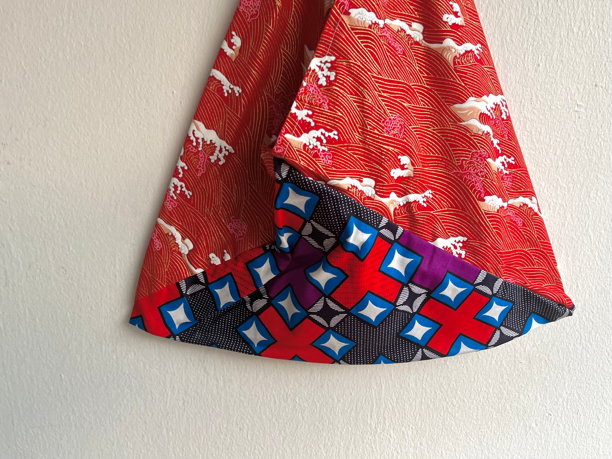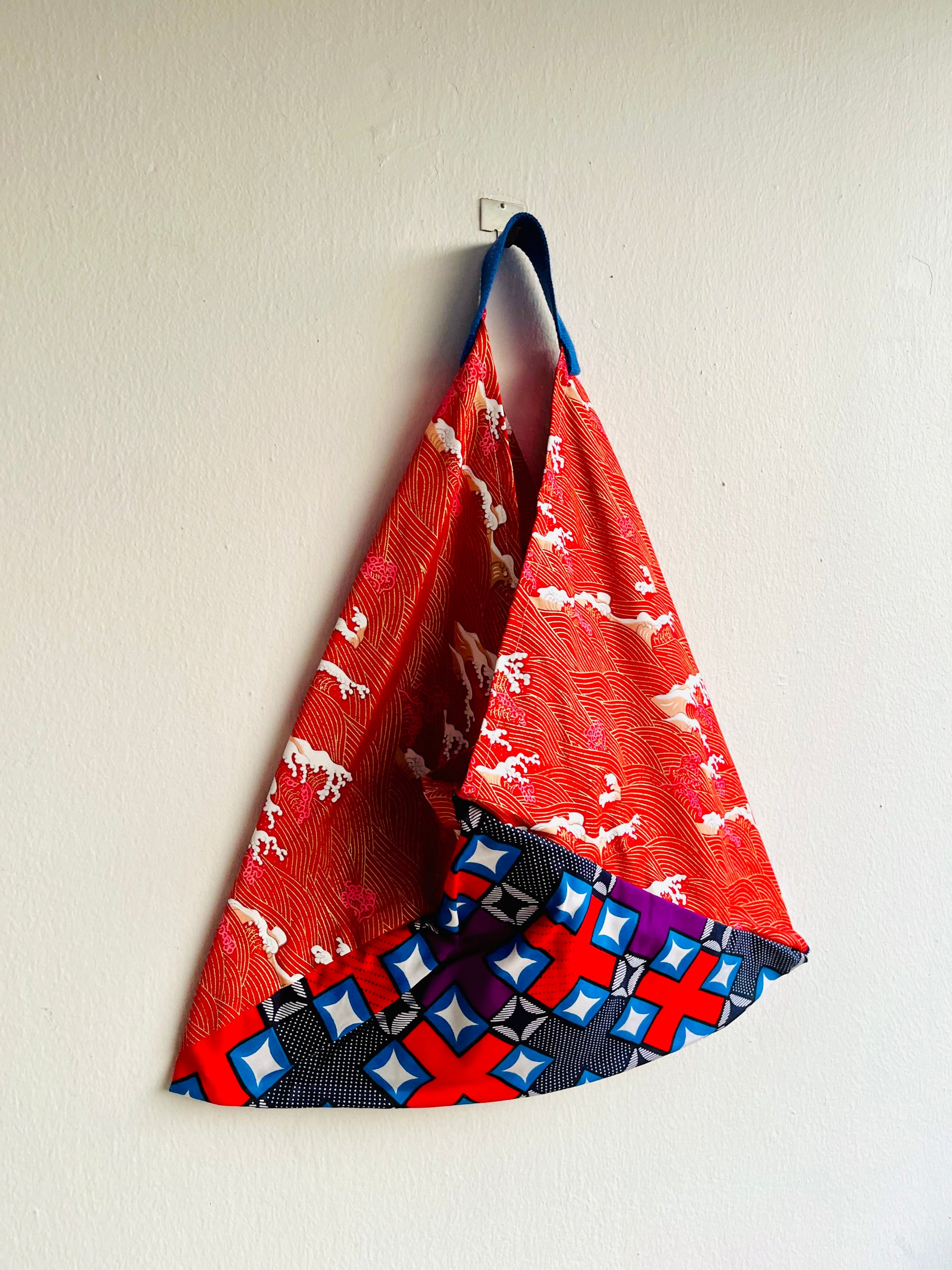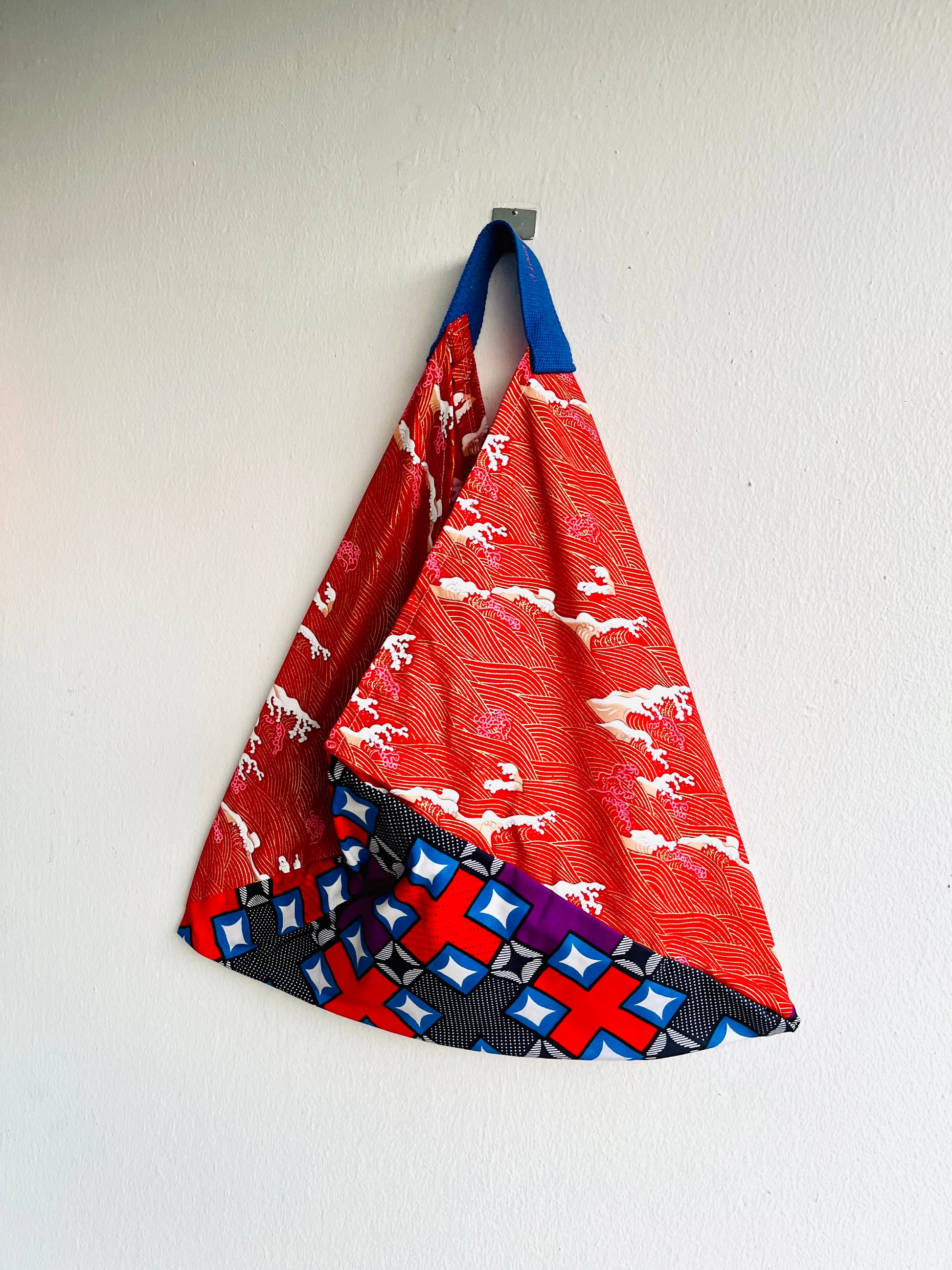 Origami bento bag, shoulder tote bag , colorful African fabric bag | Red waves in Africa