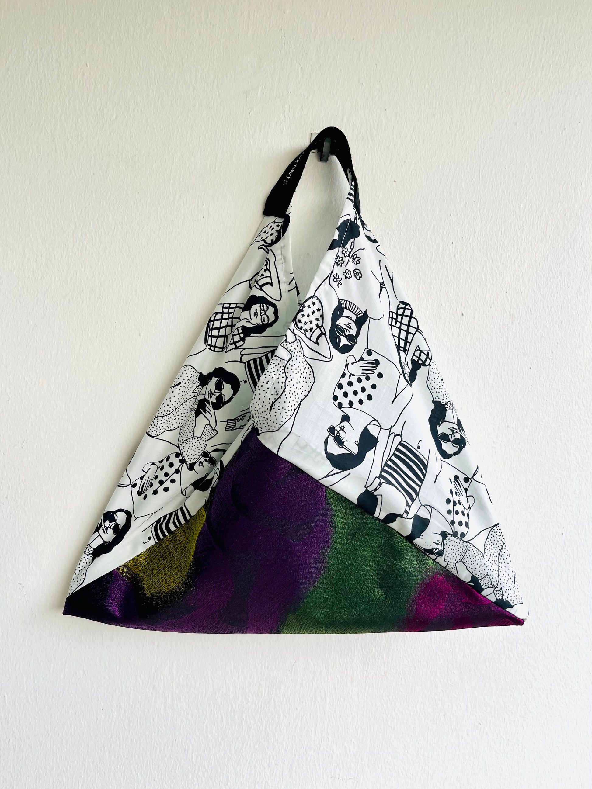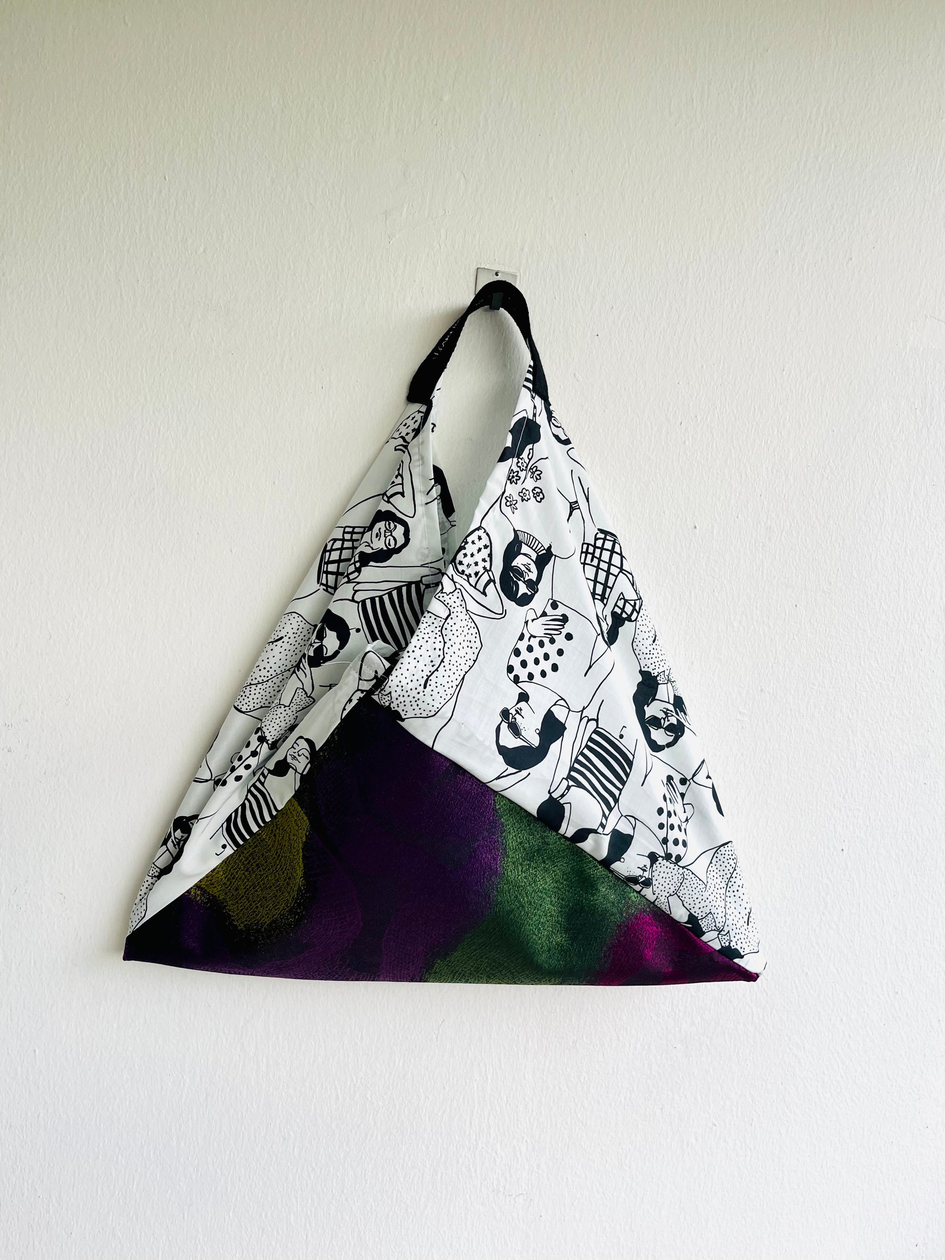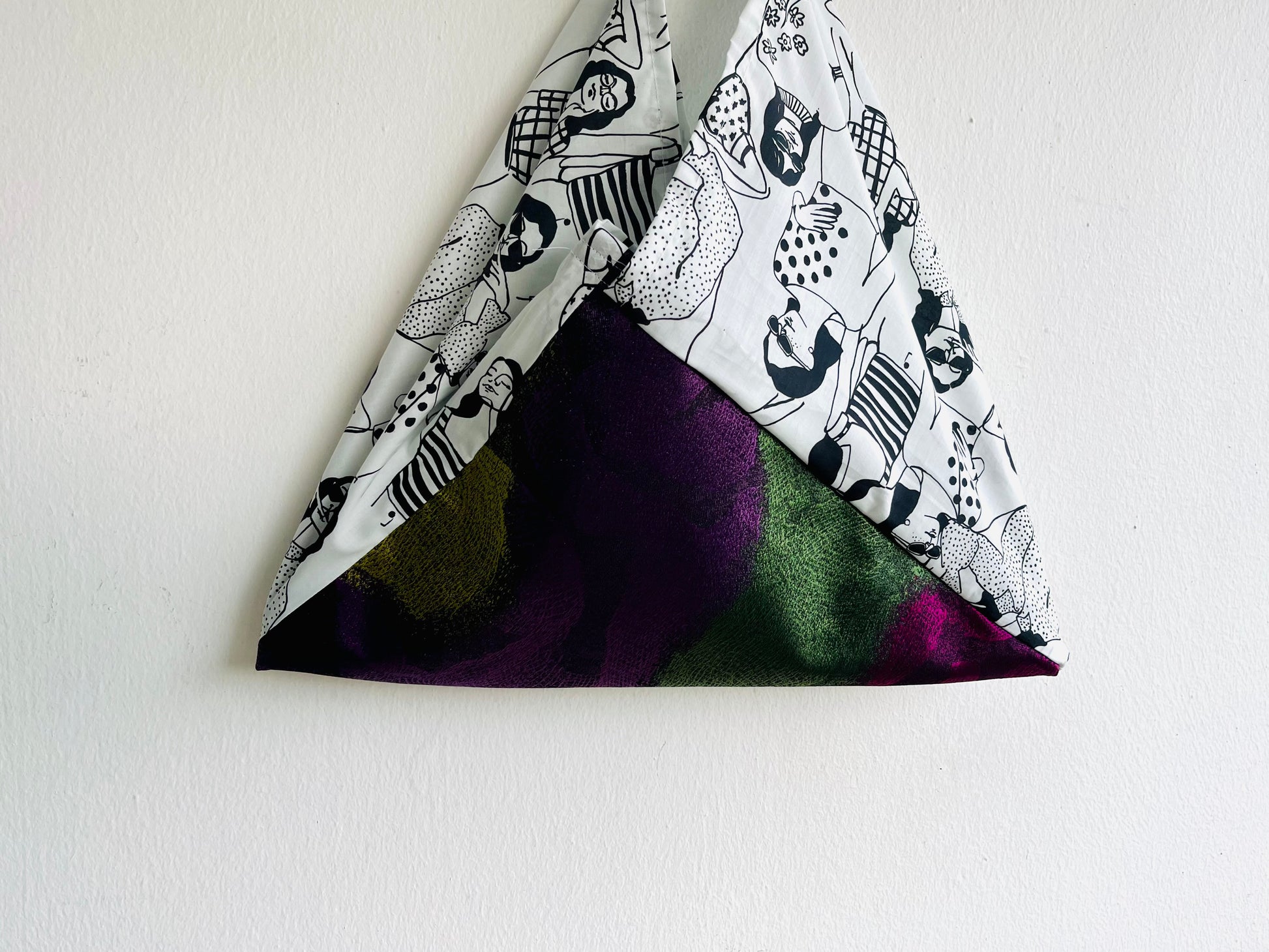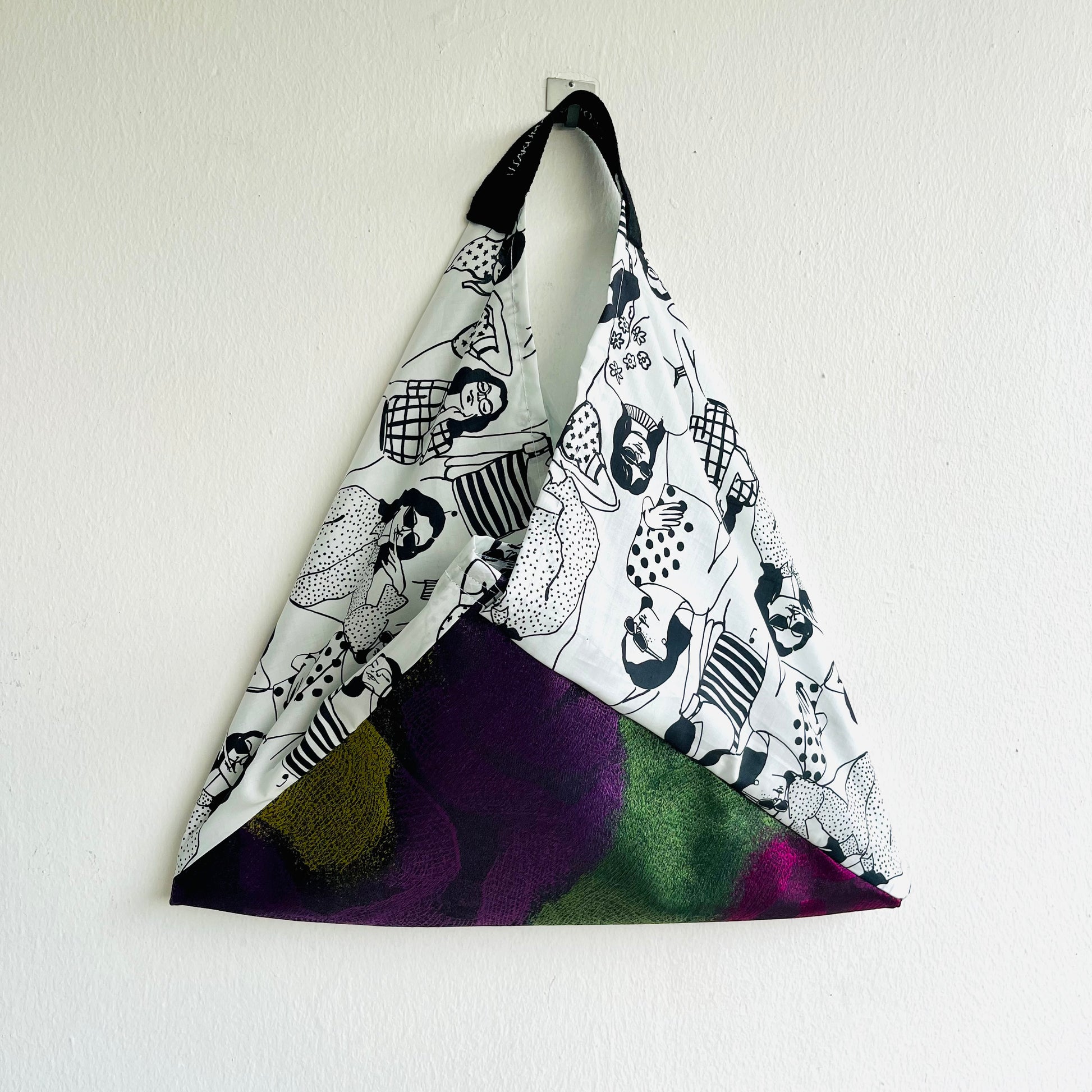 Origami bento bag , triangle tote shoulder bag , fabric Japanese inspired bag | La movida