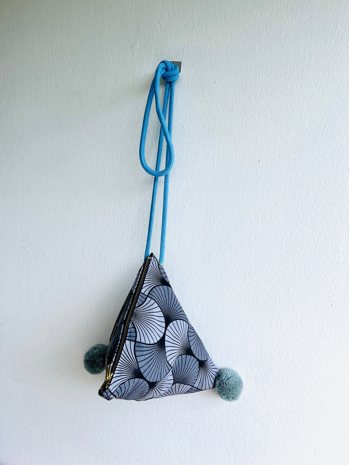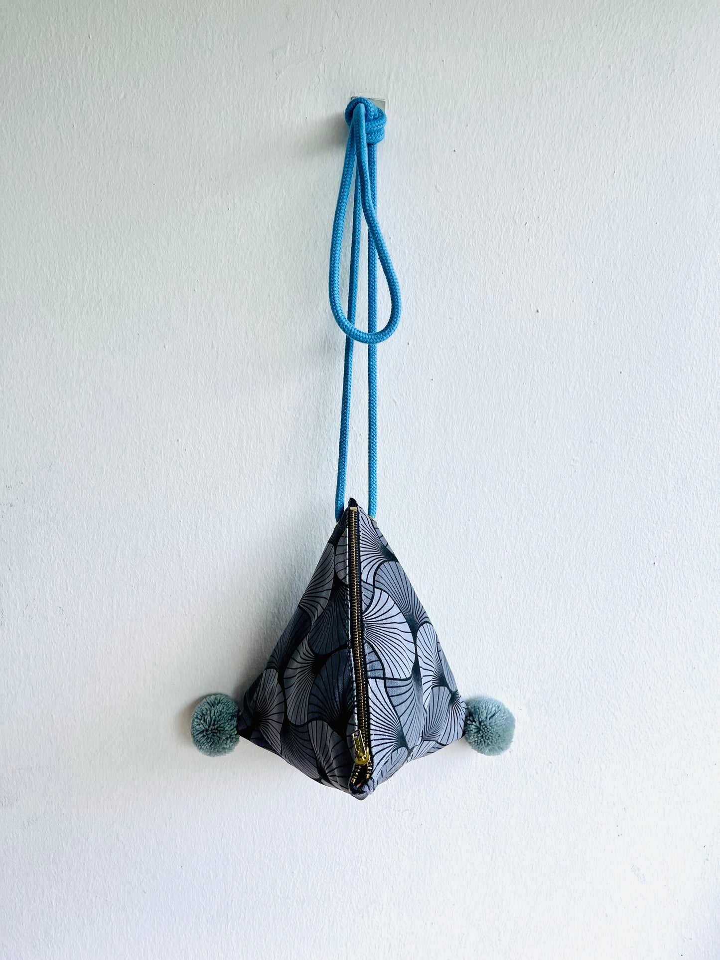 Origami dumpling bag , origami triangle small bag , pom pom cute lunch bag , weekend fabric bag | Shanghai fans