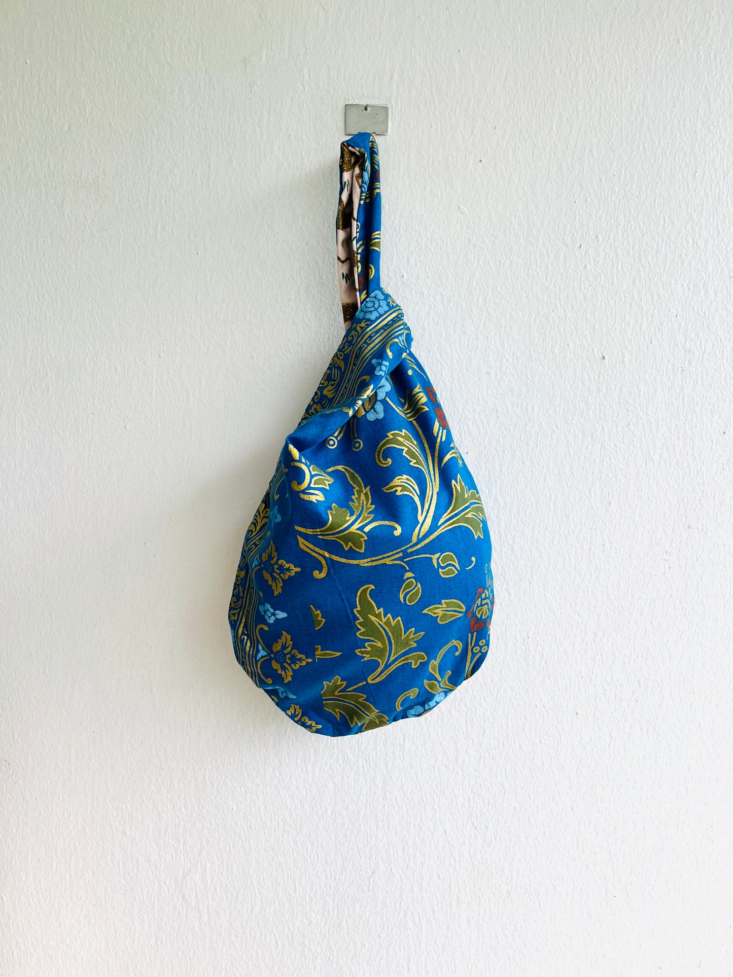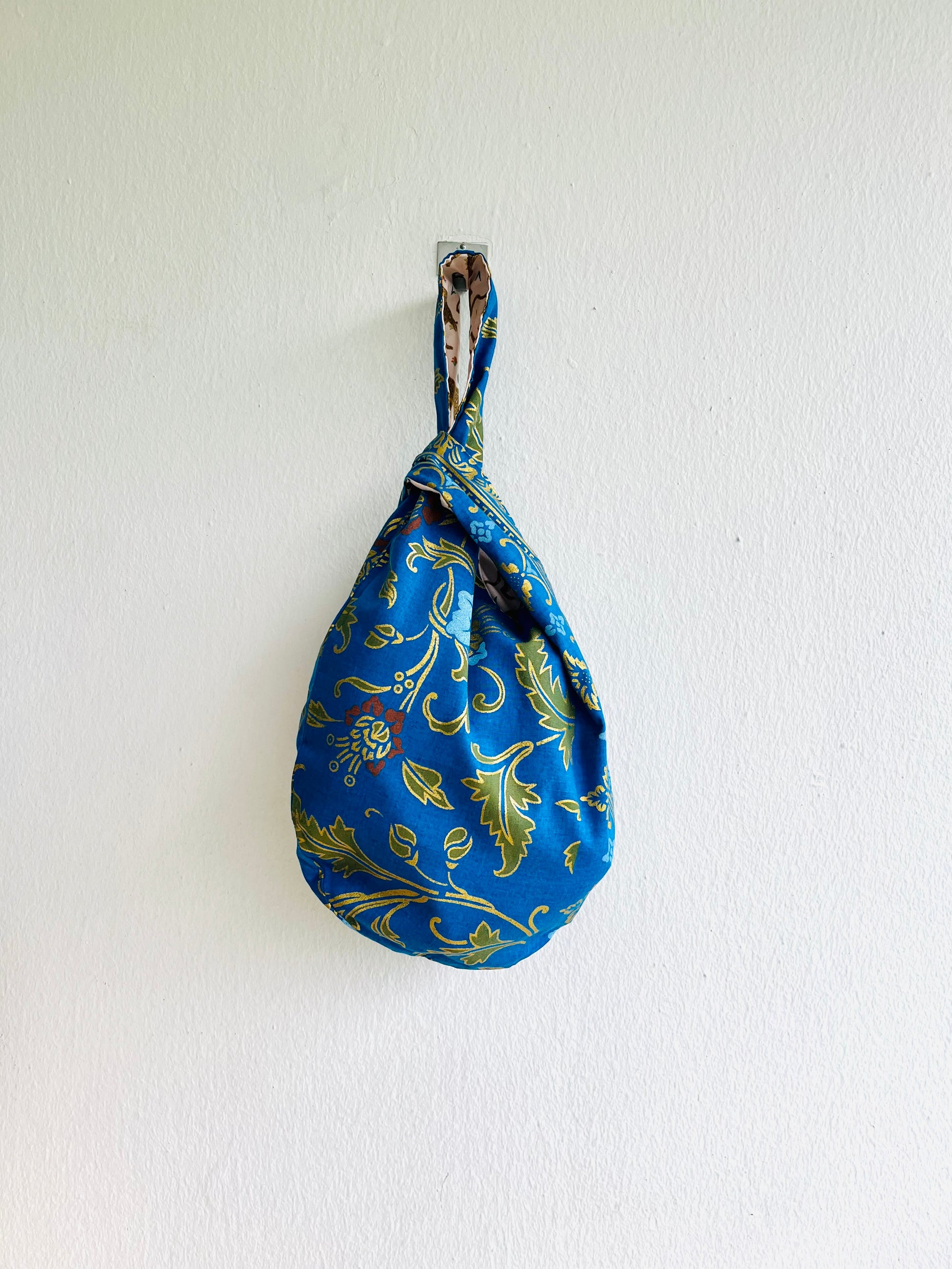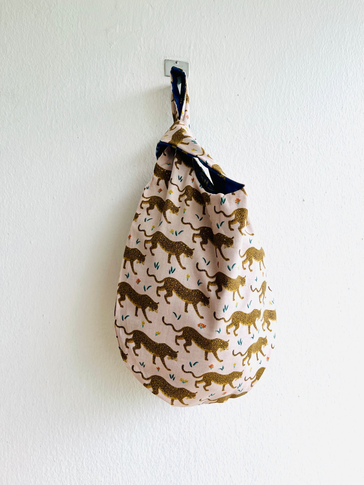 Origami knot bag , reversible Japanese inspired wrist bag , colorful eco friendly small bag | Is it a tiger or a leopard?
