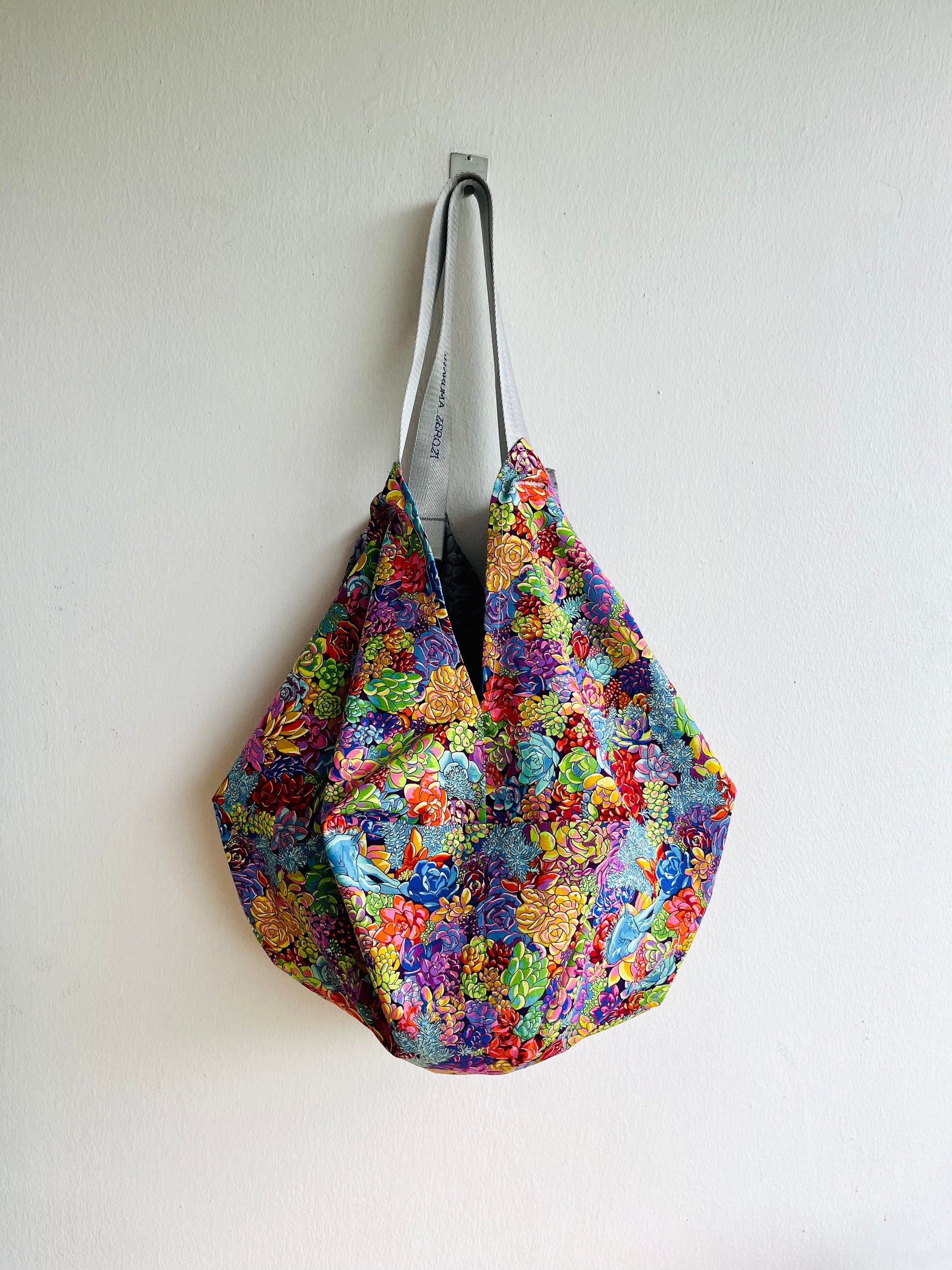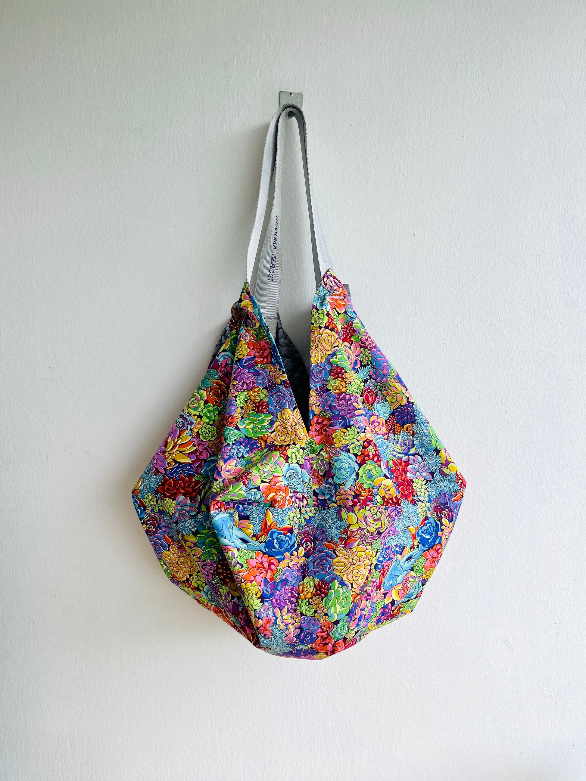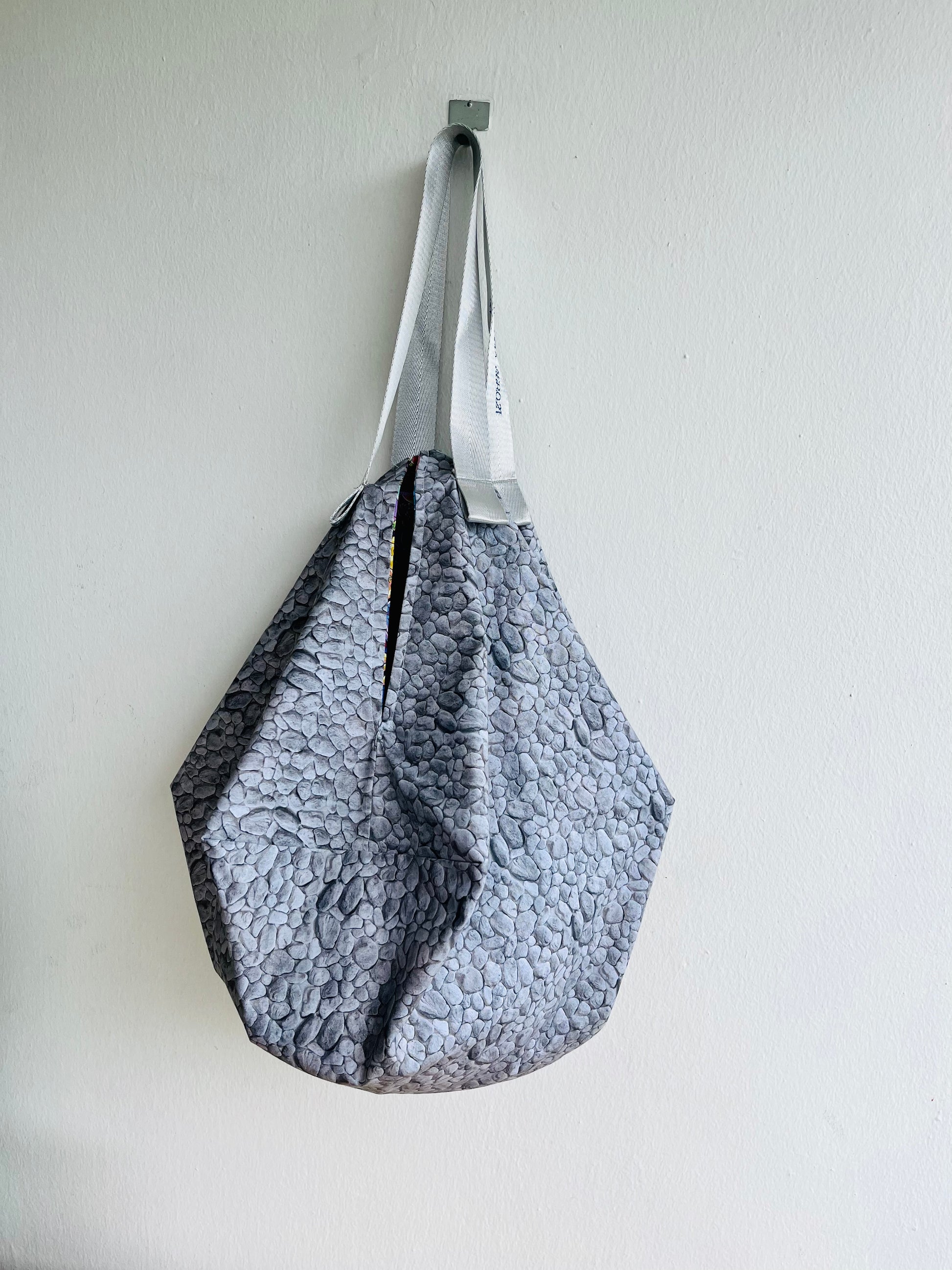 Origami sac bag , reversible fabric Japanese inspired eco bag , colorful sac origami bag | Pebbles underneath the sea