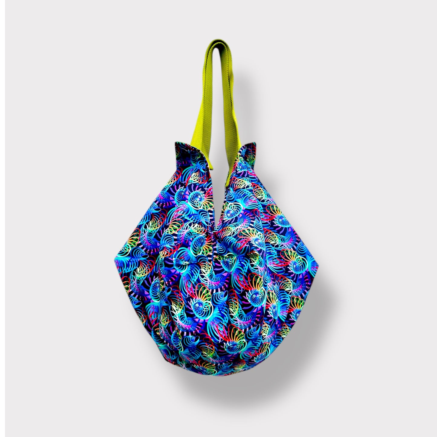 Inspired by traditional Japanese origami and furoshiki techniques, this lotus-shaped bag represents centuries of sustainable carrying solutions and mindful design, reimagined through the mystical beauty of hidden garden sanctuaries.