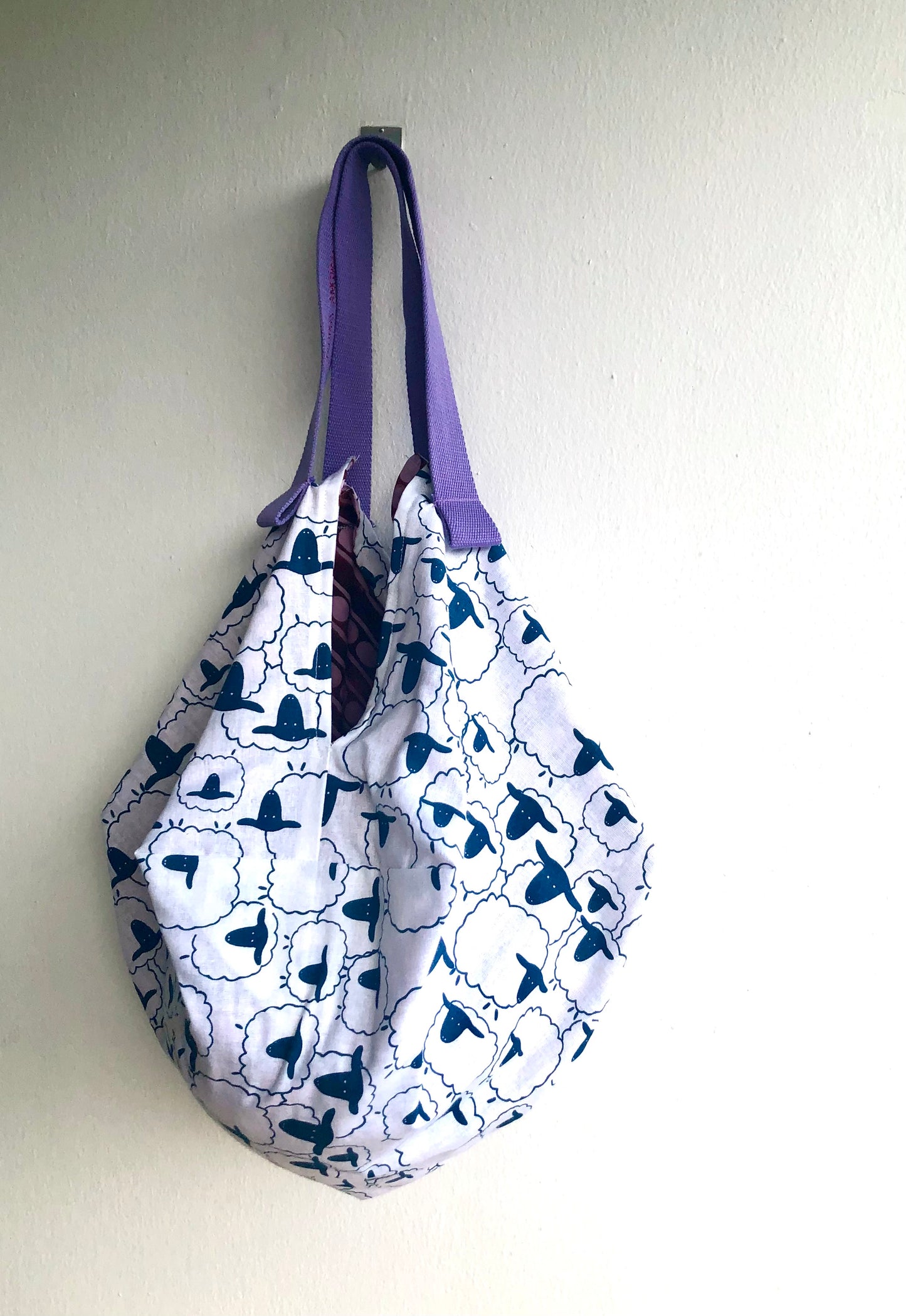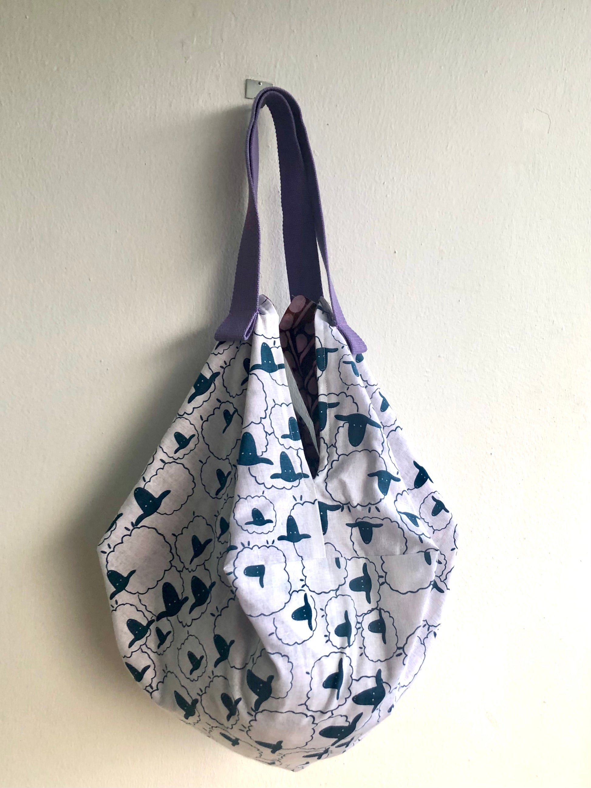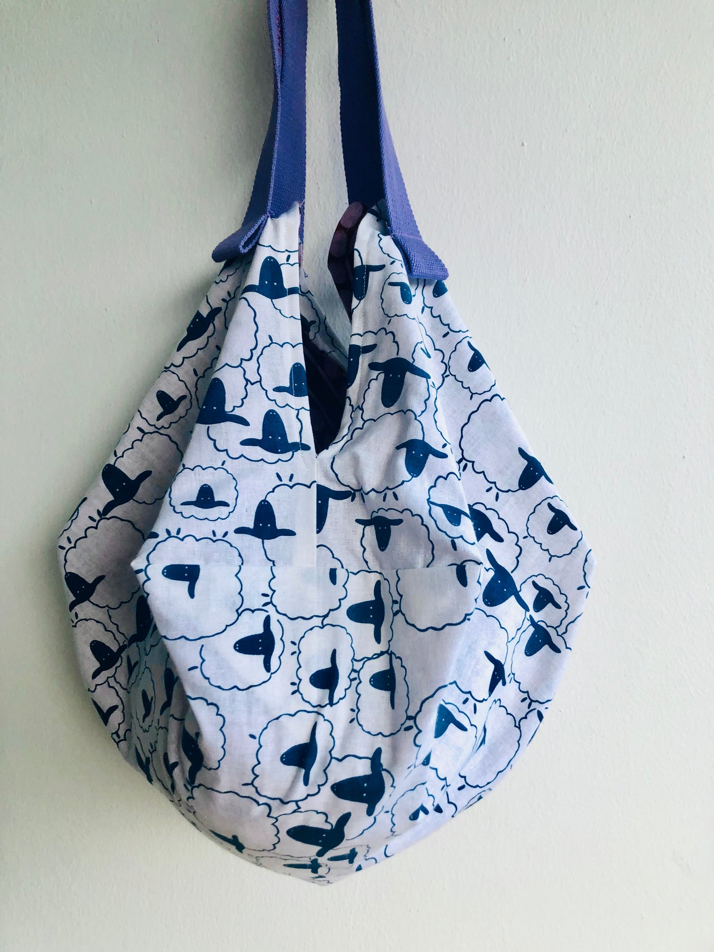 Origami sac bag , reversible shoulder fabric bag , Japanese inspired bag | Blue sheep