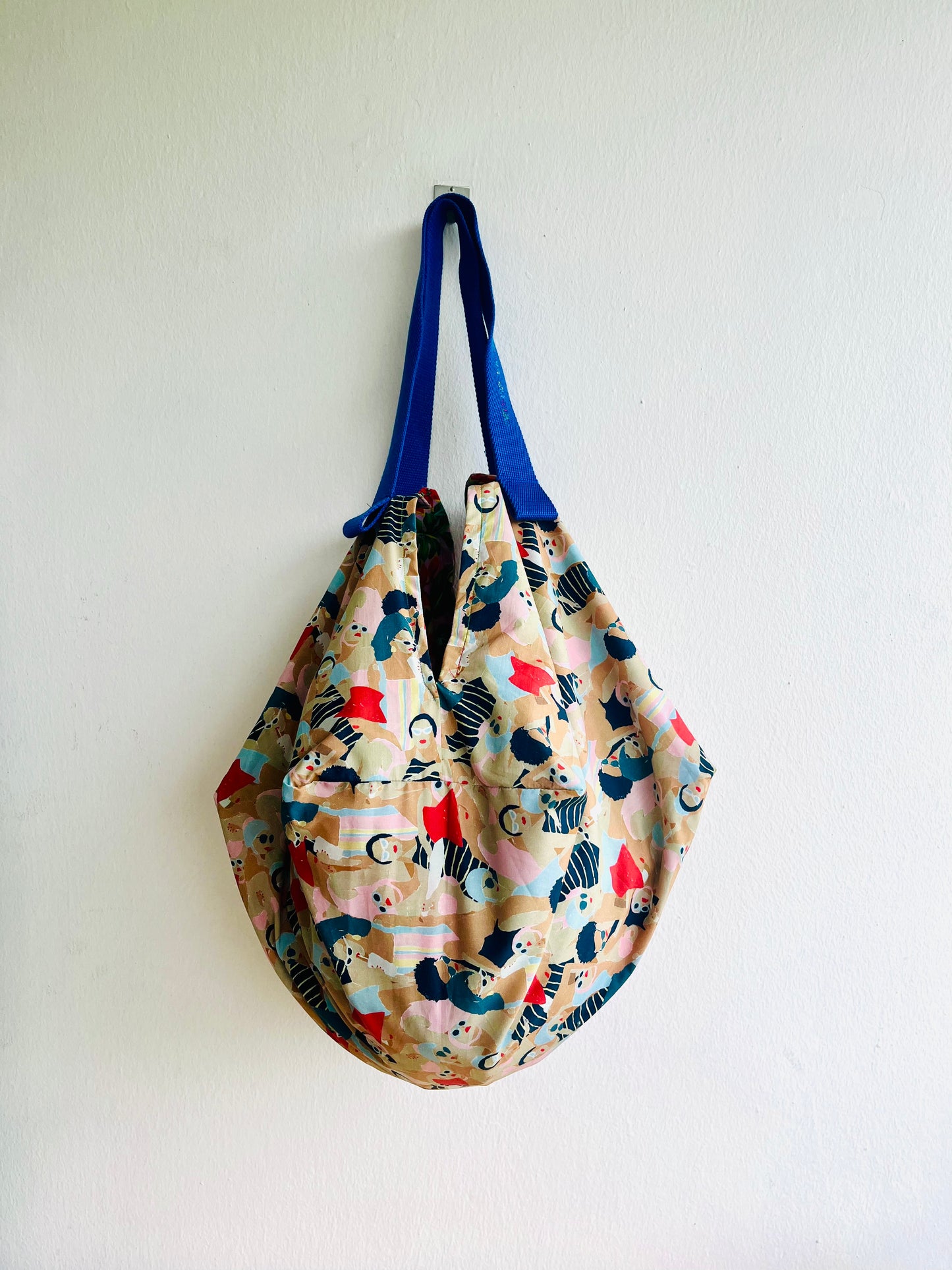 Origami sac bag , shoulder Japanese inspired bag , reversible fabric eco bag | Isola di Capri