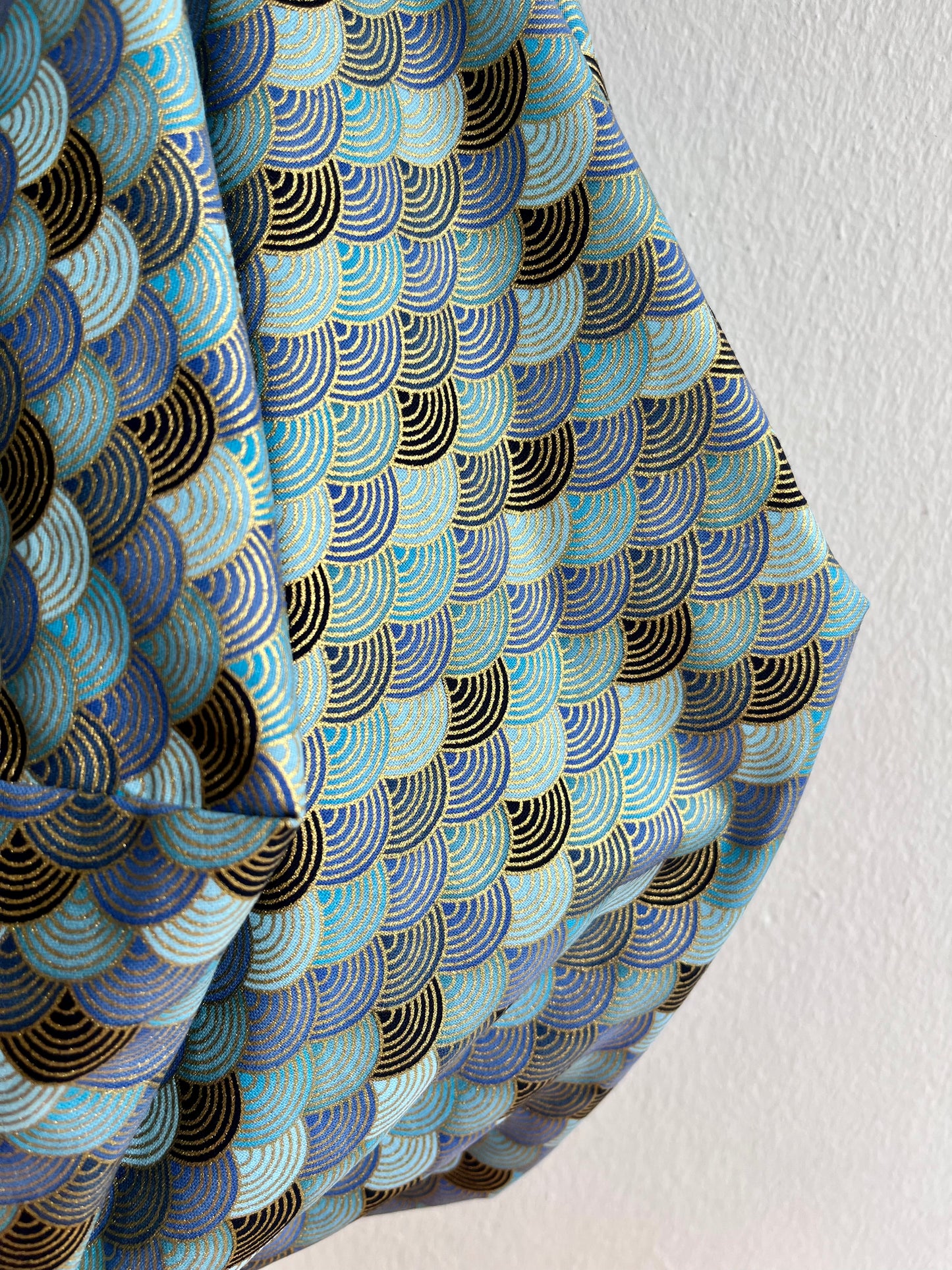 Our Mariko bags are inspired by Japanese forms and shapes. They are sewn following origami technique. They have an octagonal shape that makes them look like a lotus flower.