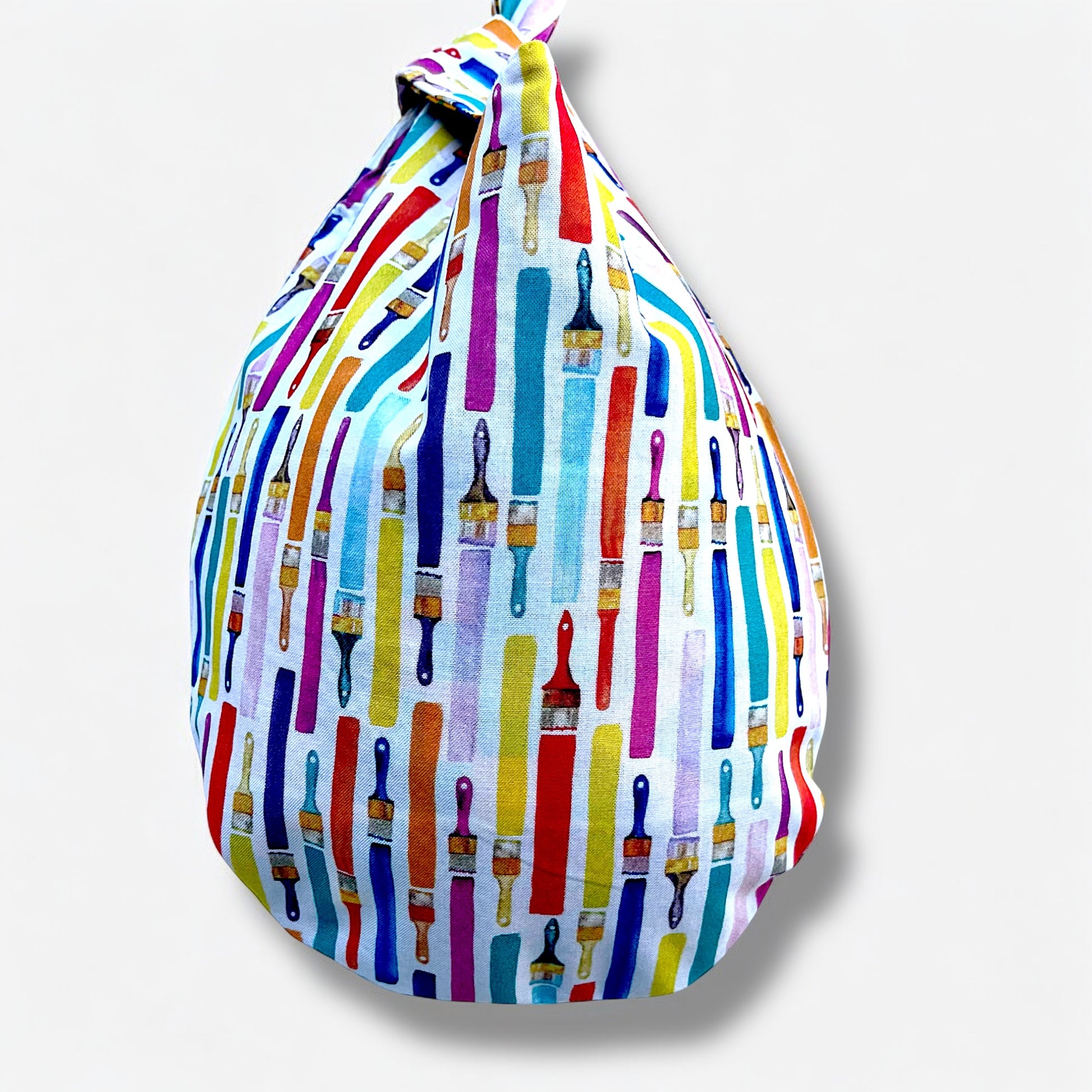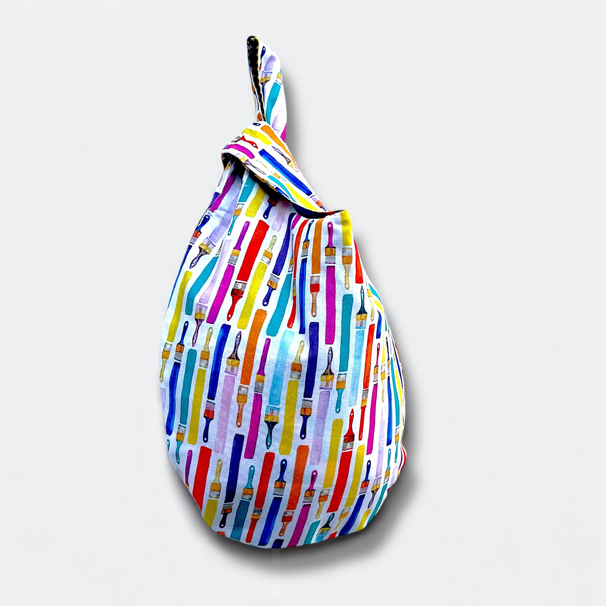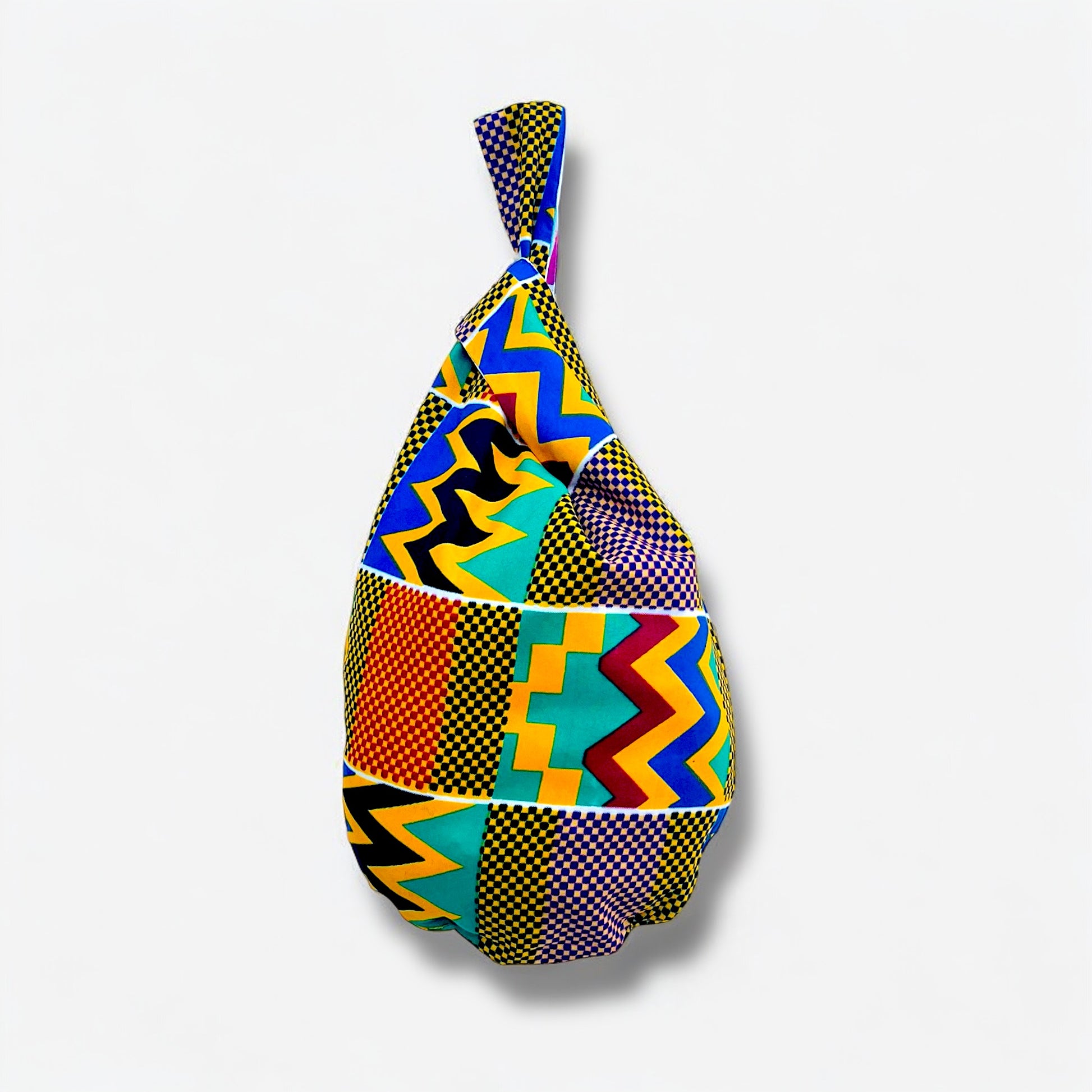 This one-of-a-kind Kiki Bag 'Colorful African Brushstrokes' is designed with a vibrant African-inspired fabric that captures the bold artistry of traditional African painting, where expressive brushstrokes and rich colors create a celebration of African cultural heritage and artistic expression.