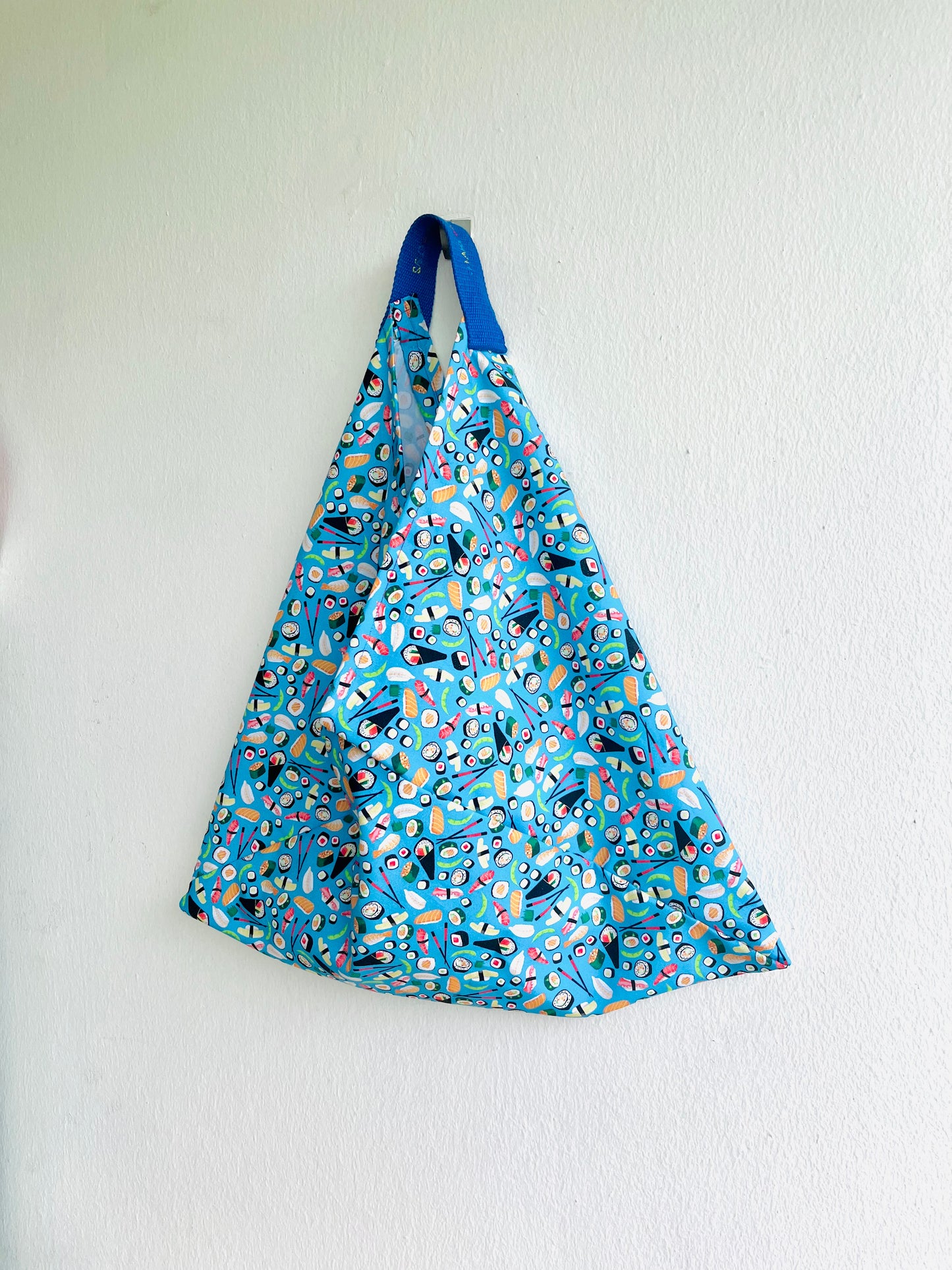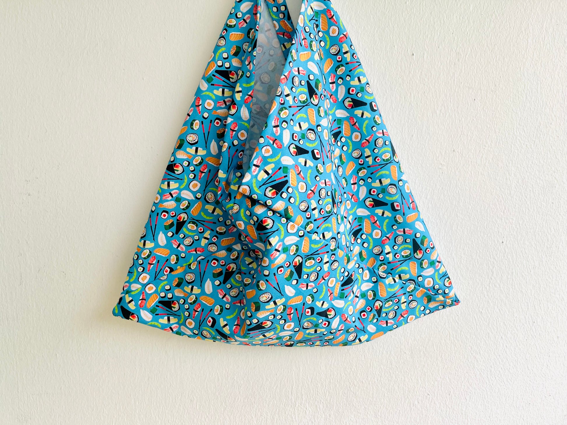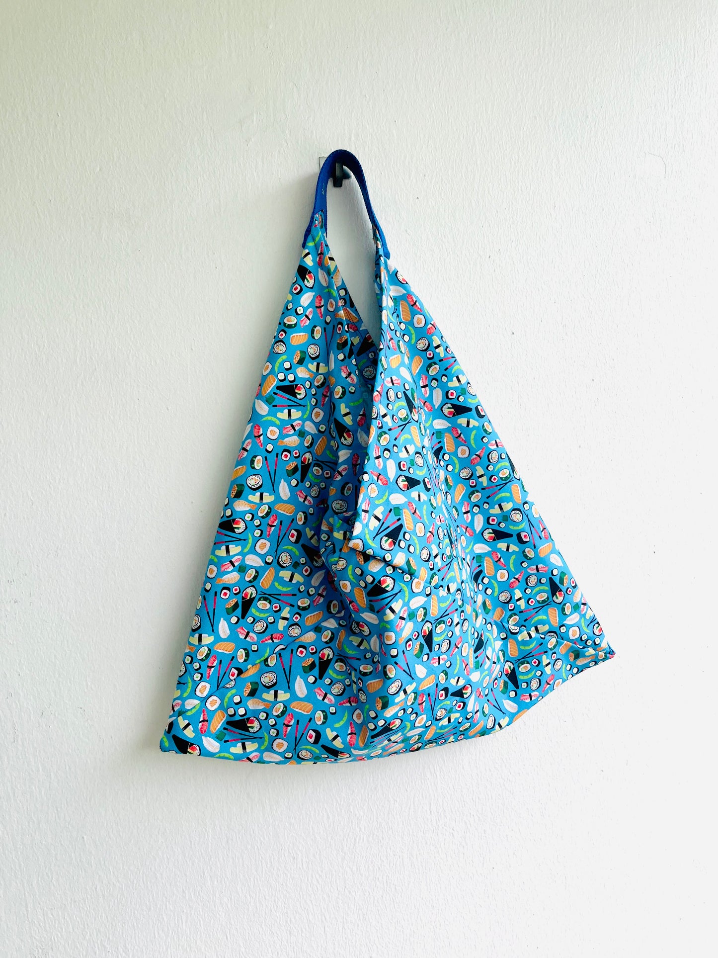 Origami tote bag , Japanese inspired shoulder bag , eco friendly fabric bab , colorful cool bag | Sushi paradise