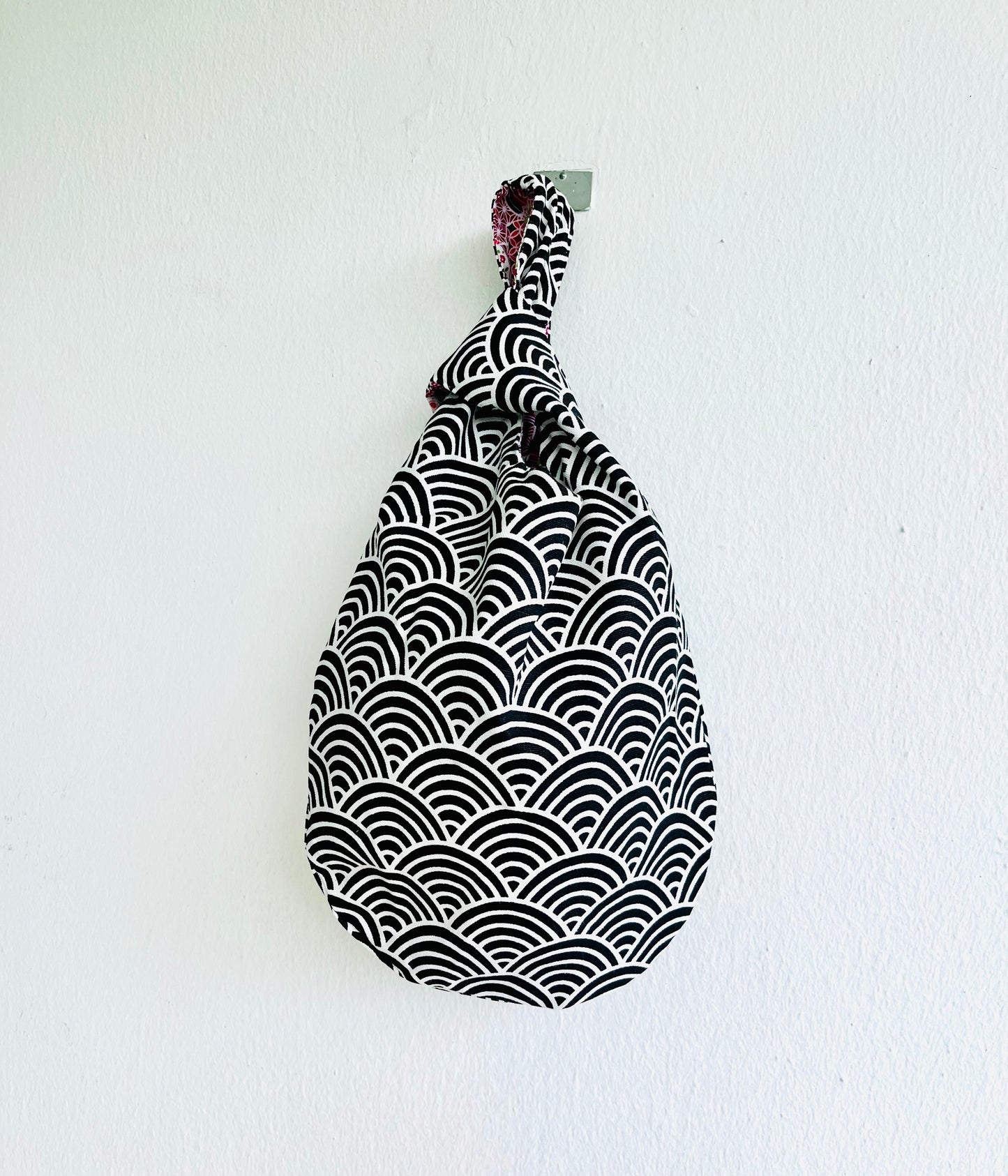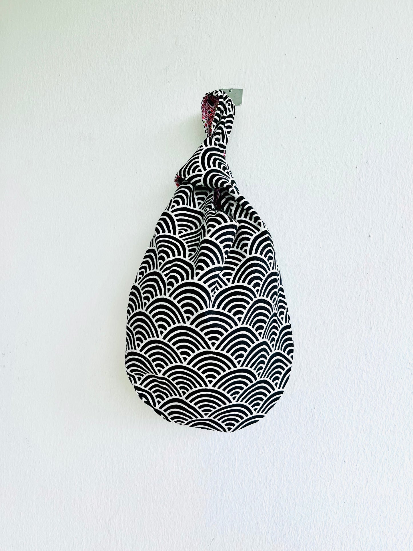 Origami wrist bag , reversible Japanese inspired knot bag , smalll origami eco bag | Japan in black & white
